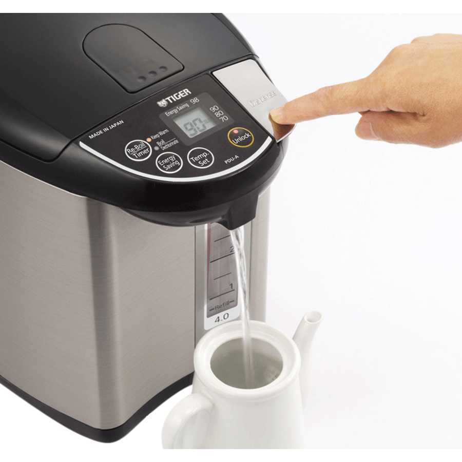 Bình Thủy Điện TIGER PDR-S40W Dung tích 4 lít – Nhiệt độ nước nóng có thể được điều chỉnh theo nhu cầu của bạn. Chọn từ 98 °C, 90 °C, 80 °C và 70