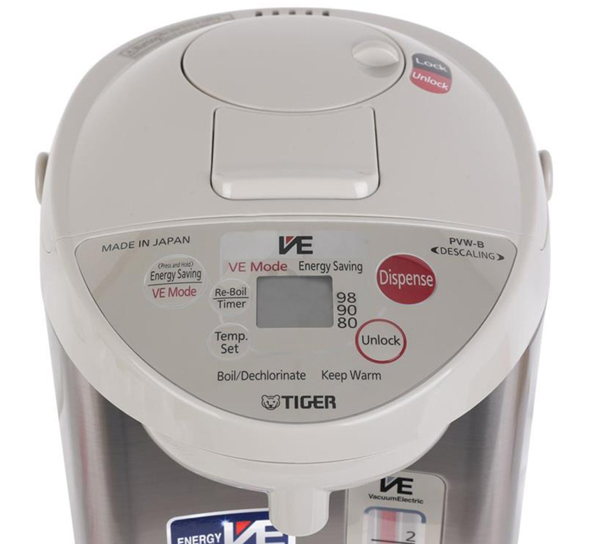 Bình thủy điện Tiger trang bị tính năng khóa an toàn đảm bảo người dùng không bị bỏng khi lỡ tay hay trong nhà có trẻ em nghịch phá. Chỉ khi mở khóa, bạn mới có thể rót nước ra khỏi bình qua 2 chế độ: nhấn rót nước và rót nước bằng pittông.