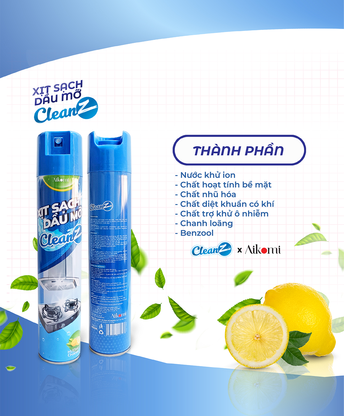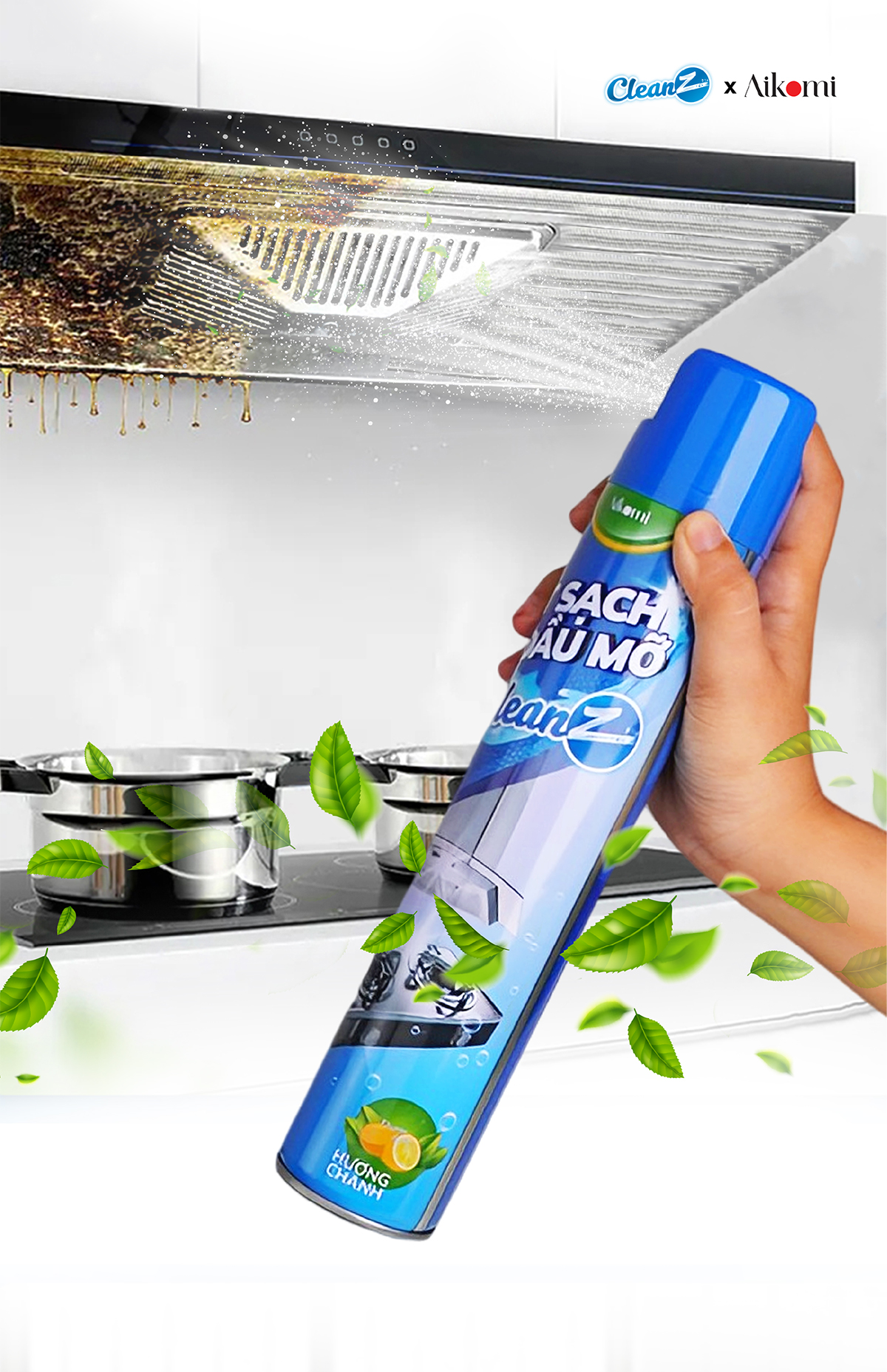 ● Xịt sạch dầu mỡ CleanZ là sản phẩm thế hệ mới chuyên dùng làm sạch dầu mỡ trên màng lọc máy hút mùi, bếp ga, bếp từ, tường gạch ốp lát, thiết bị gia đình,