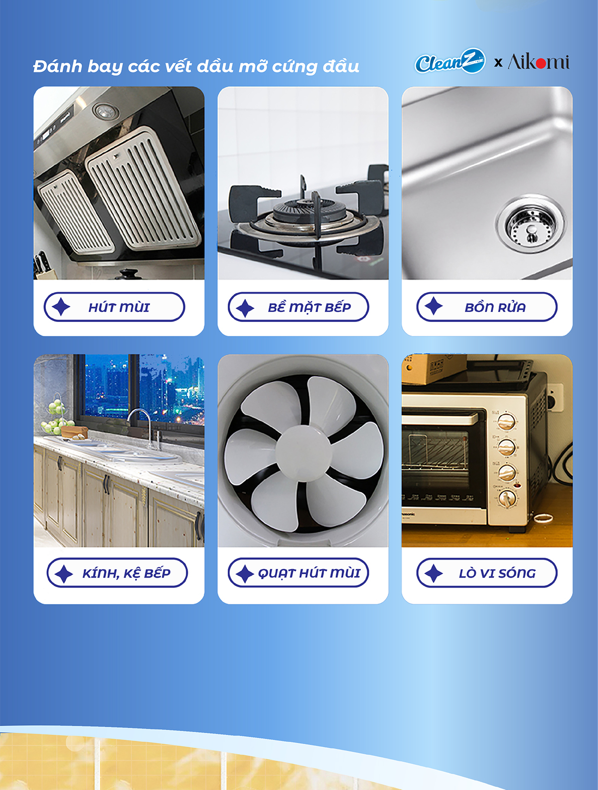 ● Đánh bay vết dầu mỡ, mang lại sự sạch sẽ, sáng bóng cho căn bếp của bạn