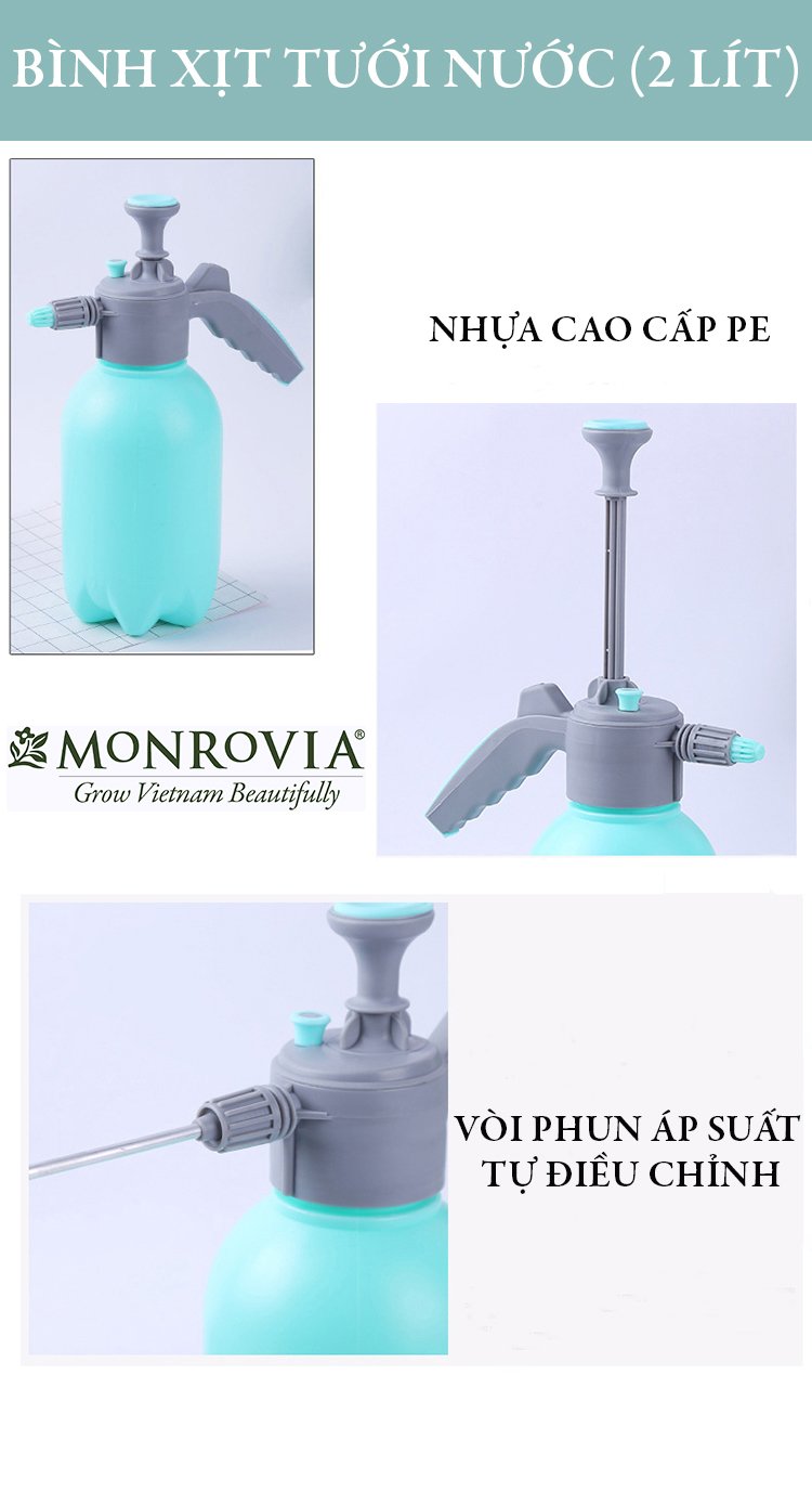 - Bình tưới nước MONROVIA, dung tích 2 lít, tích hợp chế độ tùy chỉnh phun sương hoặc phun nước