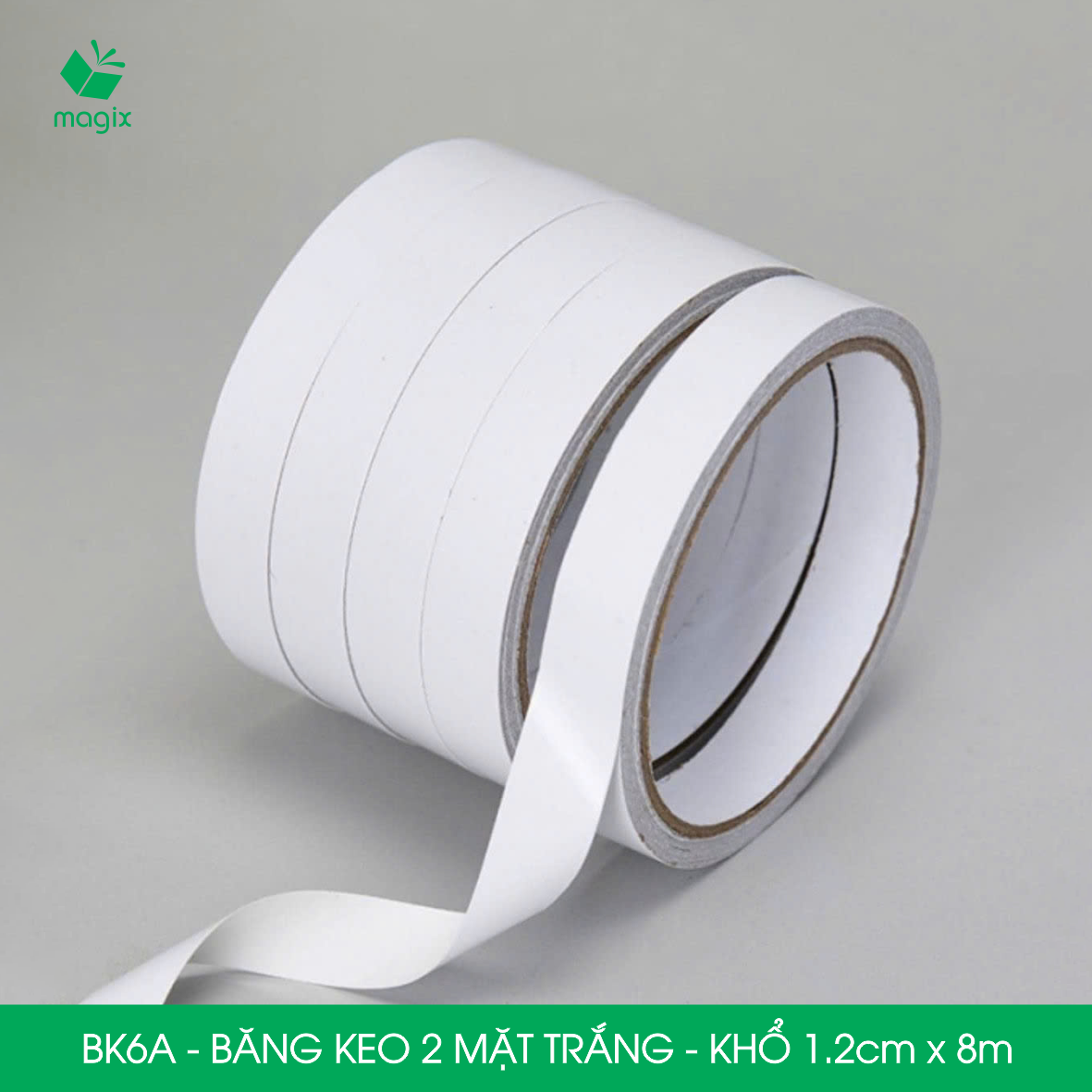 ✨BK6A - 6 cuộn băng keo 2 mặt siêu dính - Khổ 1.2cm x 8m - Băng dính 2 mặt, băng keo hai mặt