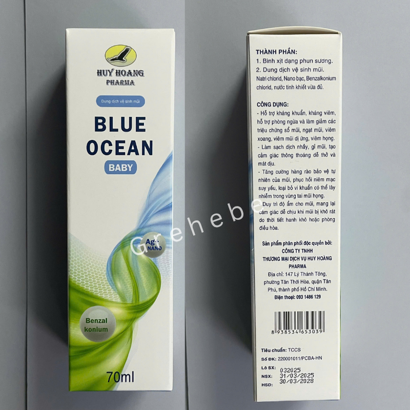 Dung dịch xịt mũi kháng khuẩn nano bạc cho bé Blue Ocean Baby hỗ trợ kháng khuẩn, hỗ trợ phòng ngừa và làm giảm triệu chứng sổ mũi, ngạt mũi, viêm xoang, viêm họng và viêm mũi dị ứng.