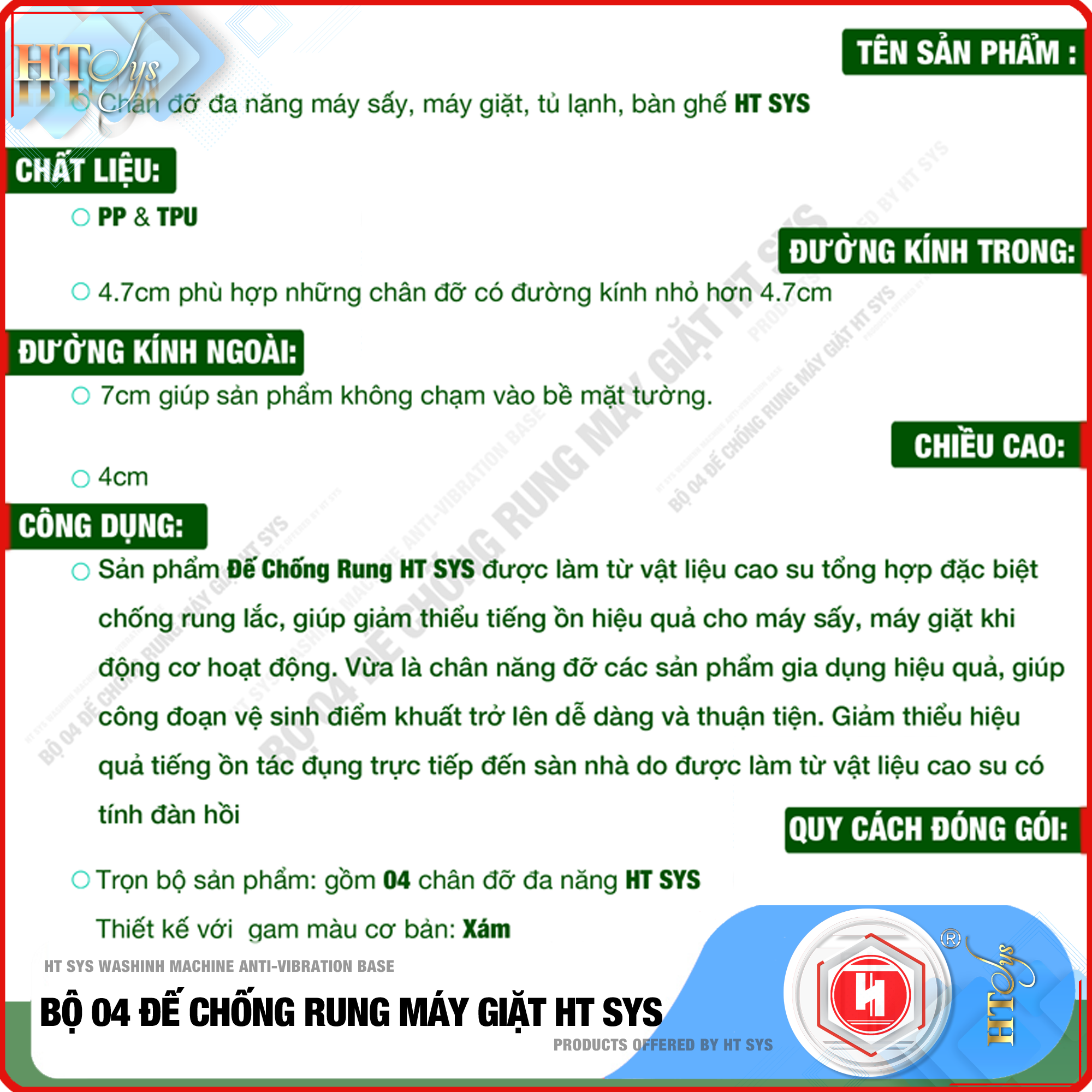 Bộ 04 chân đế cao su đa năng - HT SYS - Đế chống rung máy giặt - Đế chống ồn máy giặt, máy sấy