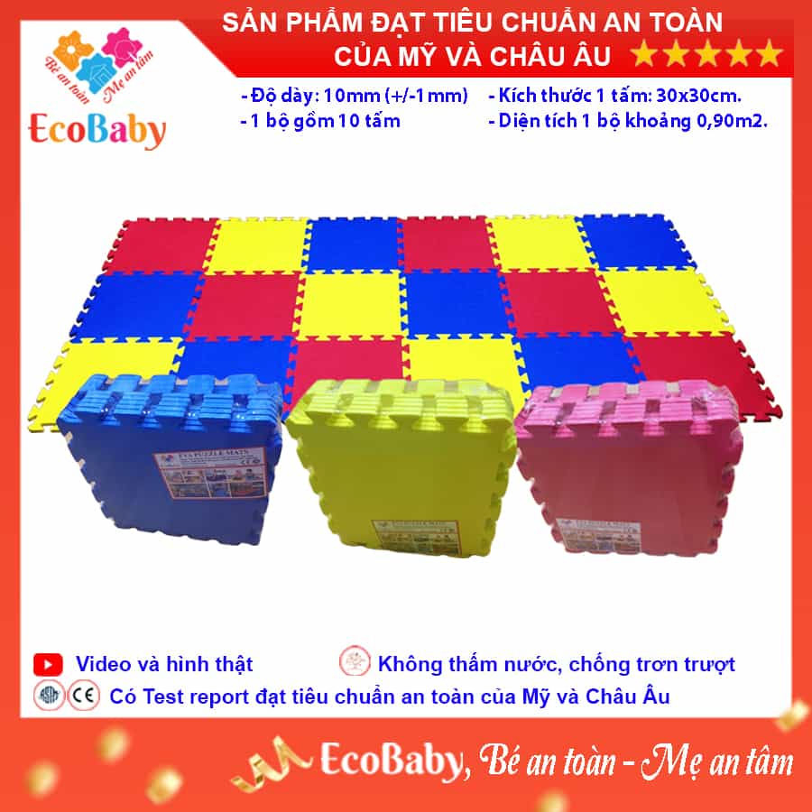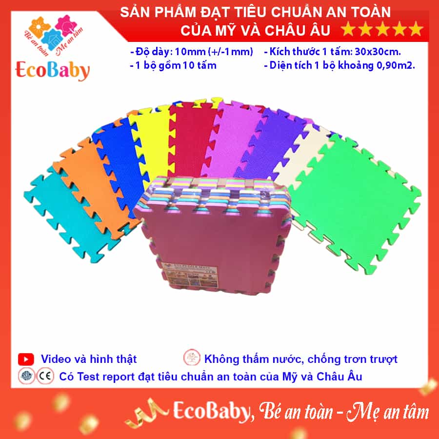 ✨Bộ 10 tấm Thảm xốp cho bé ECOBABY, thảm xốp đạt tiêu chuẩn Mỹ và Châu Âu, độ dày khoảng 1cm, kích thước 1 tấm 30x30cm - Màu trơn