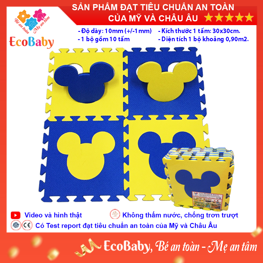 ✨Bộ 10 tấm Thảm xốp cho bé ECOBABY, thảm xốp đạt tiêu chuẩn Mỹ và Châu Âu, độ dày khoảng 1cm, kích thước 1 tấm 30x30cm - Mickey