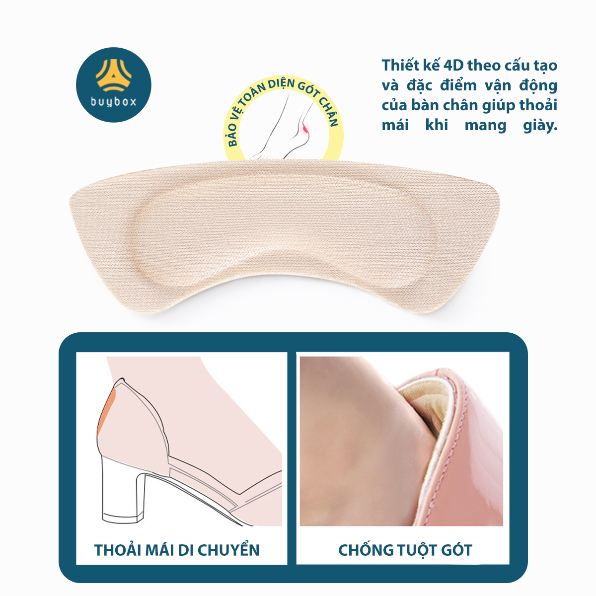 CÔNG DỤNG NỔI BẬC Lót giày đa năng chống rộng buybox là sự kết hợp giữa lót giày và lót chống trầy gót chân. Giúp chống rộng giày, giảm size.