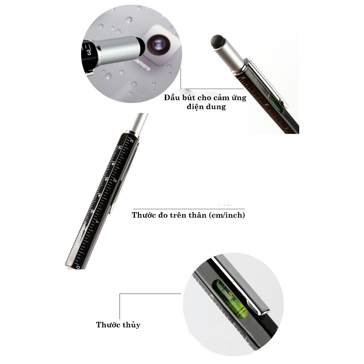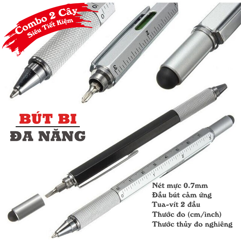 Bộ 2 Cây Bút Bi 6 in 1 Đa Chức Năng Đầu Bút Cảm Ứng Chạm Màn Hình Tích Hợp Tua Vít Tiện Lợi (mực đen) - Hàng Chính Hãng Video thực tế Sản phẩm Bộ 2 cây bút bi với 2 đầu tua vít 2 cạnh và 4 cạnh tiện lợi Phù hợp với những người yêu thích kỹ thuật hoặc giúp họ thuận lợi hơn trong công việc của mình Sản phẩm 6 in 1: Bao gồm 2 đầu tua vít (2 cạnh/ 4 cạnh), thước đo (inch / cm), đầu cao su điện dung cảm ứng, thước thủy cân bằng, Bút bi (mực đen) Combo 2 cây bút bi tiện lợi màu sắc khác nhau giúp bạn có thể phân biệt dễ dàng hơn khi sử dụng Đầu bút bi với nét mực đậm 0.7mm dễ dàng thay thế khi sử dụng hết Bút cầm chắc chắn độ nặng vừa phải không quá nhẹ cũng như quá nặng, cầm cho cảm giác chắc chắn Nhiều chức năng thuận tiện hơn trong công việc Đầu cảm ứng điện dung bằng cao su, mềm tránh gây xướt màn hình điện thoại của bạn Thuận lợi cho khách hàng ký trên màn hình của mình trong các giao dịch điện tử cần thiết