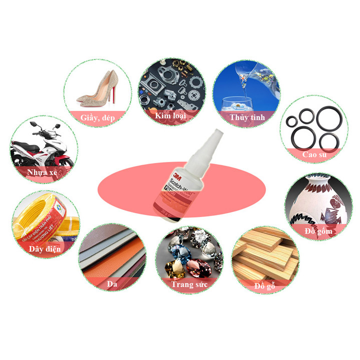 Dán tốt hầu hết các vật dụng cần thiết trong gia đình như giày, dép, tủ nhựa, kim loại, cao su, gỗ, da, đồ gốm, thủy tinh, trang sức...