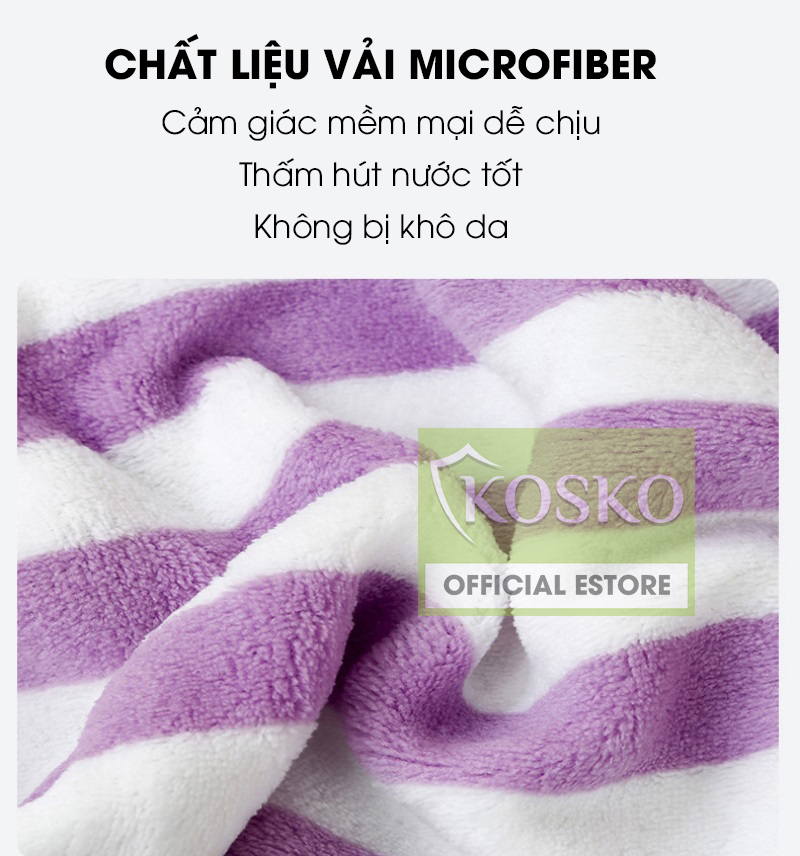 ✨Bộ 2 khăn tắm khổ lớn microfiber KOSKO kích thước 70x140cm và 35x75cm siêu thấm hút không rụng lông