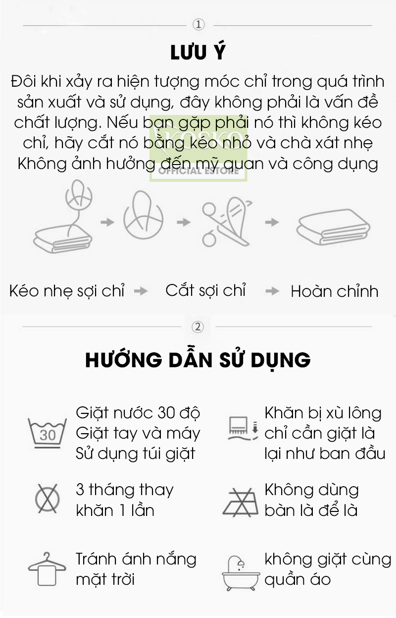 - Trước khi sử dụng quý khách cần giặt sơ với nước và phơi khô để loại bỏ bụi bẩn trong quá trình sản xuất và vận chuyển