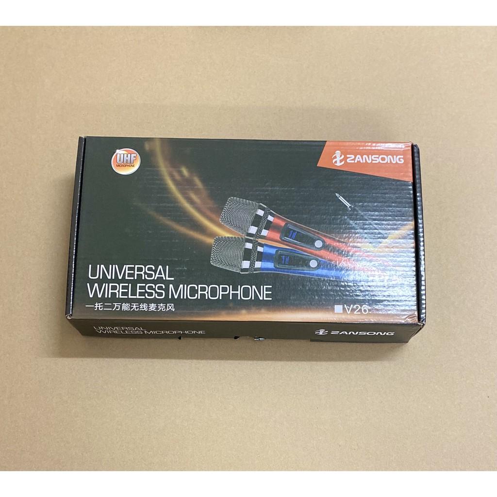 Micro không dây karaoke cao cấp Zansong V26 tiếng rõ sáng dễ dàng lắp đặt (tặng 2 chống lăn và 3 pin sạc 150K)Thông Tin Chi Tiết Micro không dây karaoke cao cấp Zansong V26 tiếng rõ sáng dễ dàng lắp đặt (tặng 2 chống lăn và 3 pin sạc 150K)Hình Ảnh Micro không dây karaoke cao cấp Zansong V26 tiếng rõ sáng dễ dàng lắp đặt (tặng 2 chống lăn và 3 pin sạc 150K)- Micro Karaoke gồm có 2 micro kèm theo bộ thu phát bluetooth nhỏ gọn, ổn định, nhanh chóng sử dụng để kết nối cho bất cứ chiếc loa hay dàn âm thanh