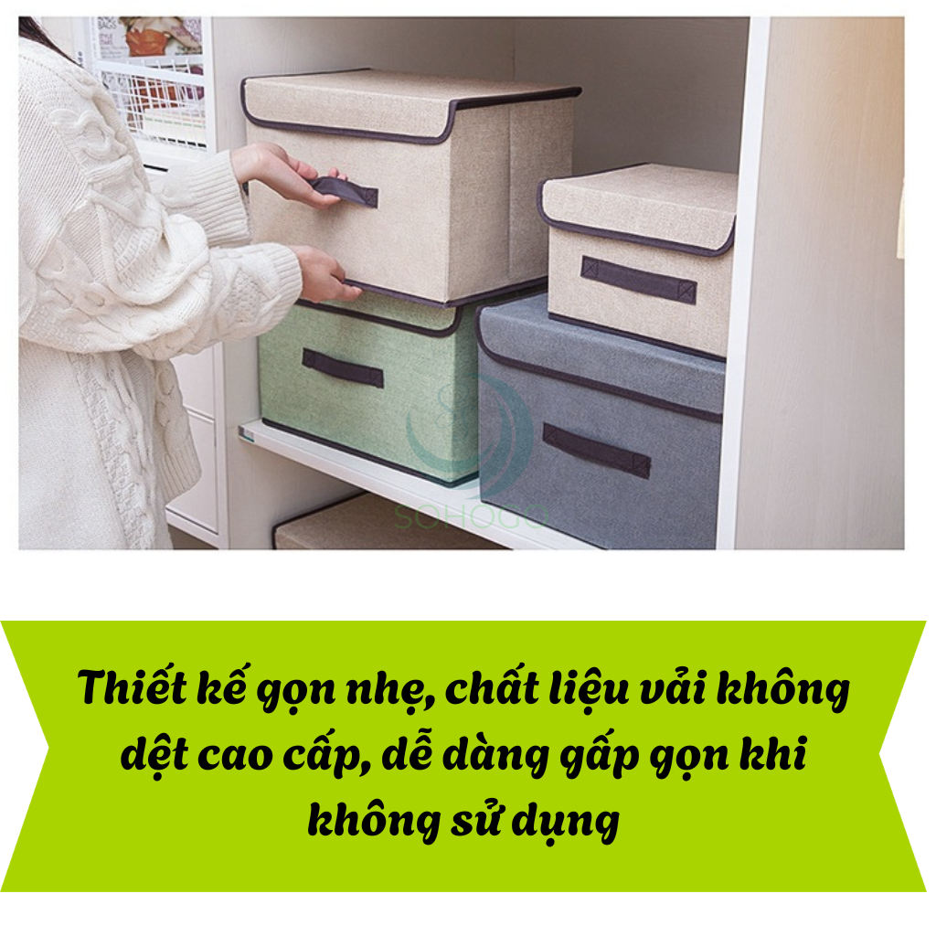 Hộp vải đựng đồ có nắp là giải pháp lưu trữ thông minh, giúp bạn tối ưu không gian sống, giữ gìn nhà cửa luôn ngăn nắp. Thiết kế gọn nhẹ, chất liệu vải không dệt cao cấp, dễ dàng gấp gọn khi không sử dụng. Sản phẩm phù hợp để lưu trữ quần áo, đồ chơi, chăn gối, phụ kiện và nhiều vật dụng gia đình khác.