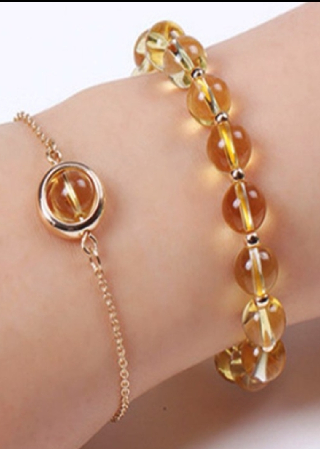 - Số lượng: 2 vòng tay gồm: 1 vòng đá thạch anh vàng mix charm tròn và 1 vòng tay chất liệu hợp kim cao cấp không đổi màu, không gỉ.