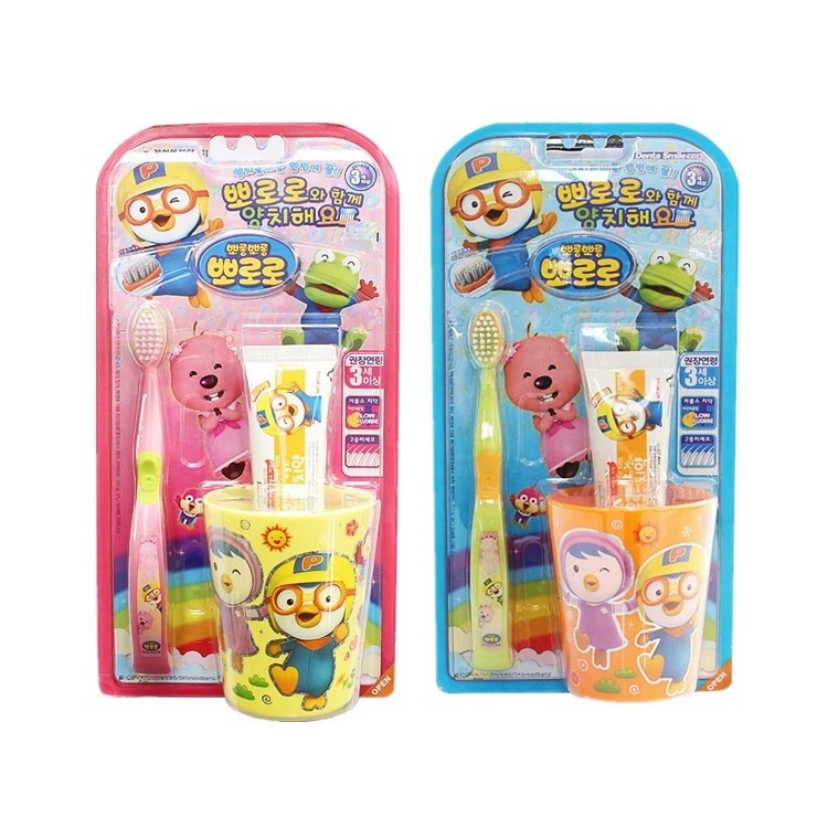 ✨Bộ 3 bàn chải đánh răng + kem đánh răng + cốc Pororo Hàn Quốc