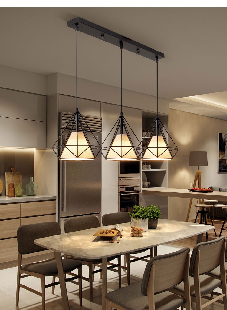 Đèn treo thả trần cao cấp trang trí bàn ăn cao cấp VERSION 3 bóng ngang 3 bóng ngang cao cấp kèm bóng LED chuyên dụng Để không gian phòng ăn của gia đình trở