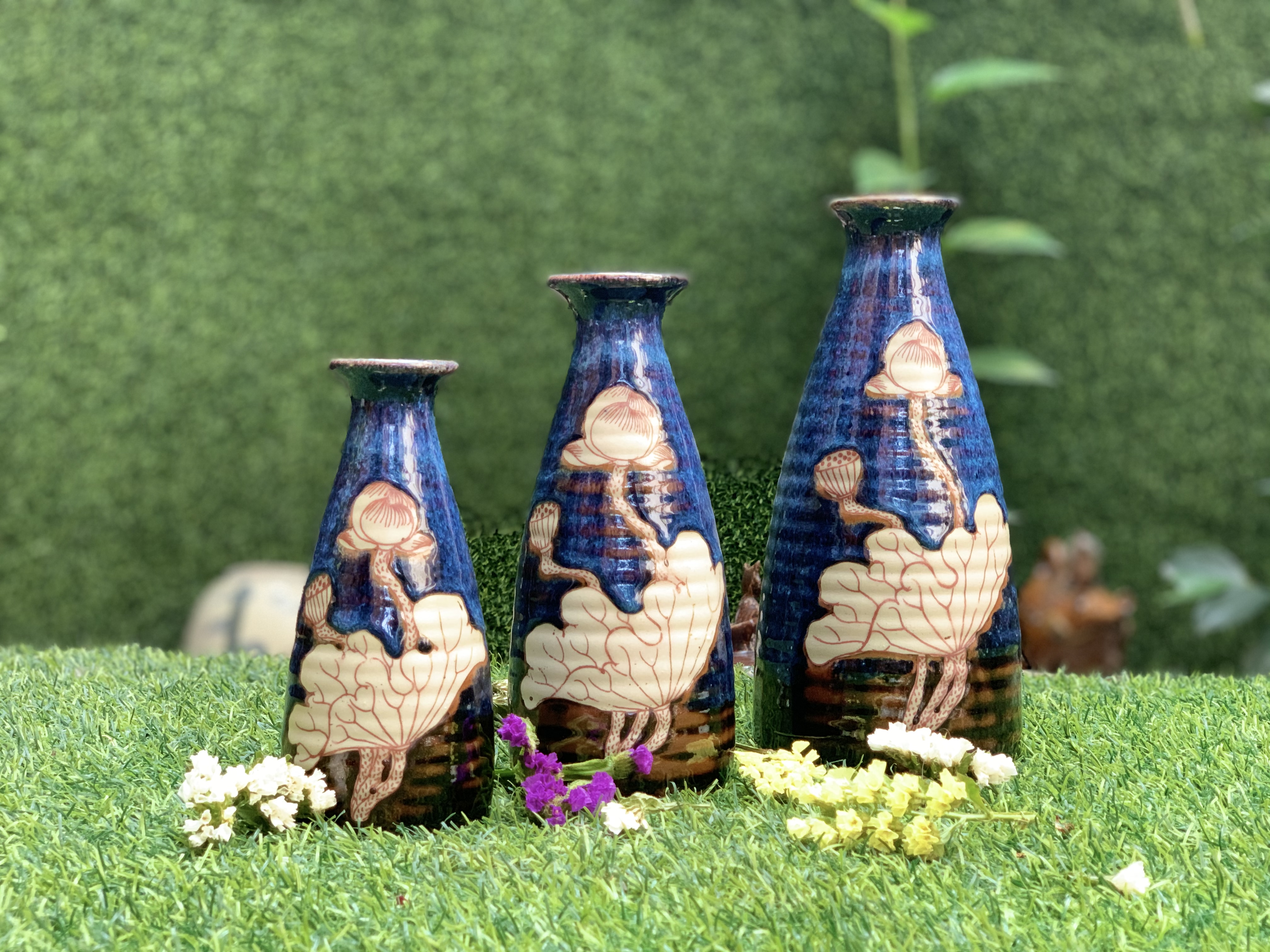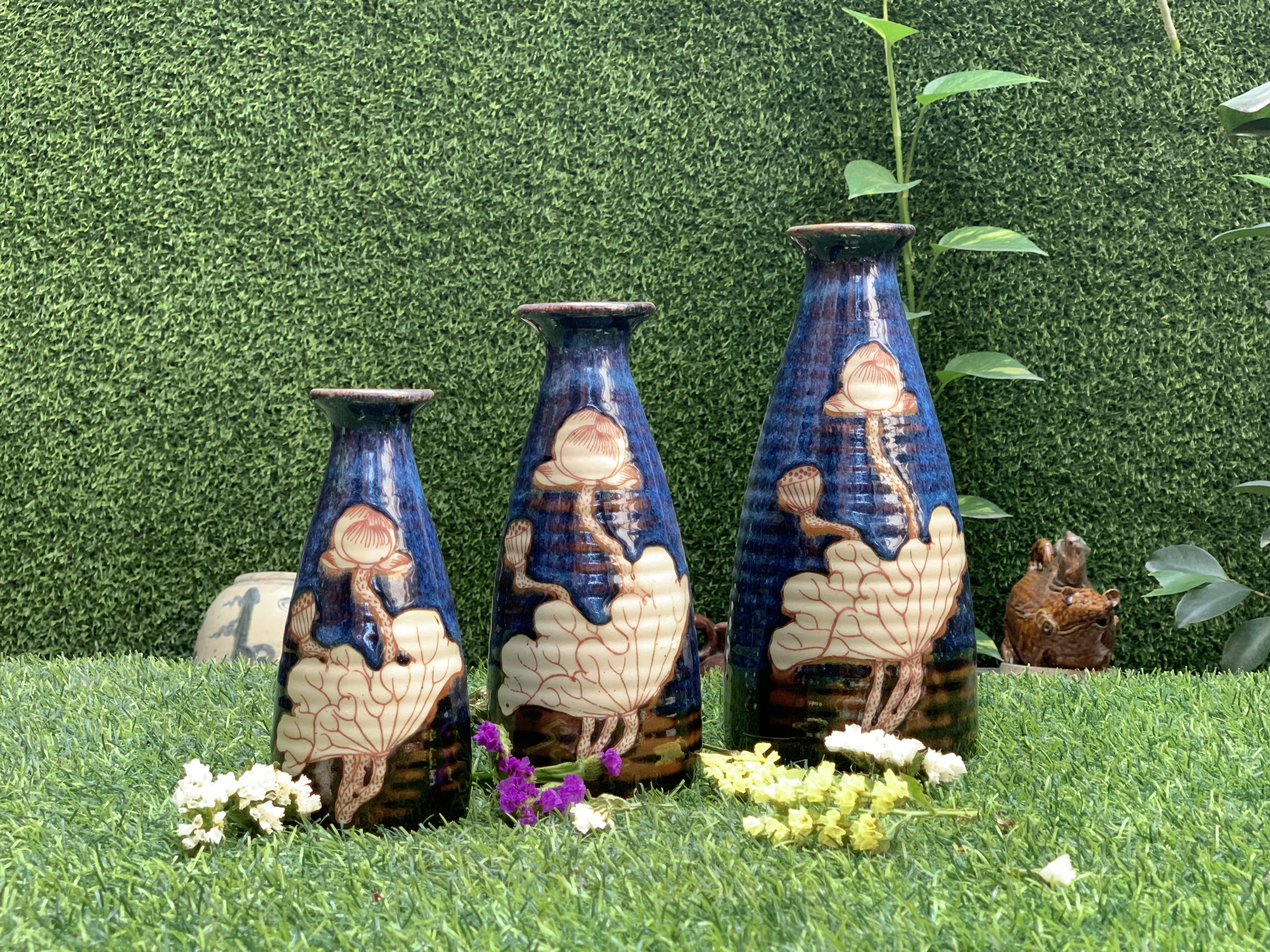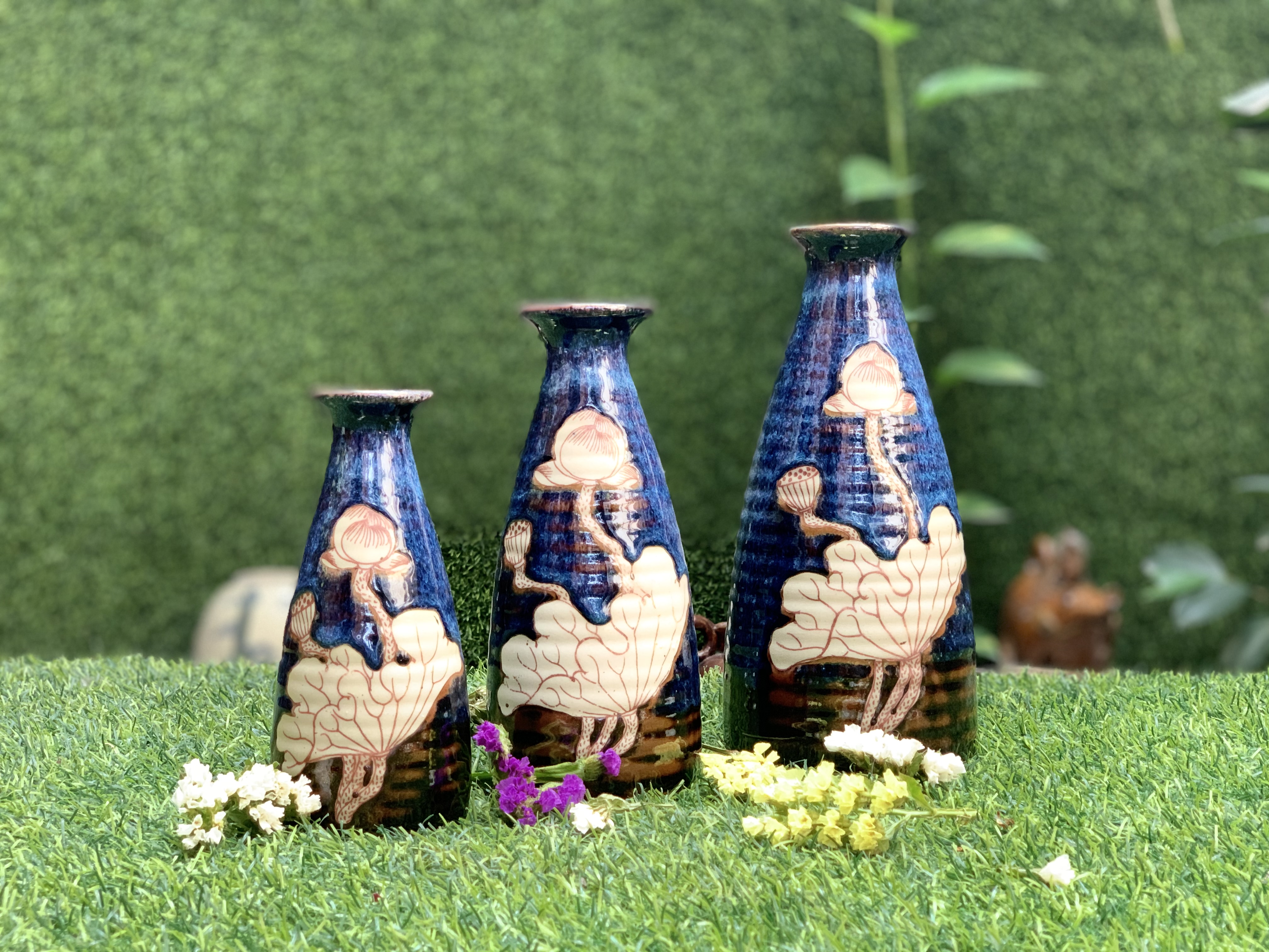✨ Bộ 3 lọ hoa men hỏa biến vẽ sen