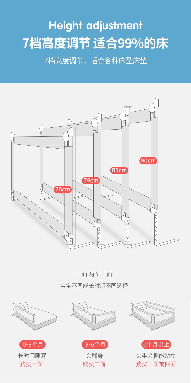 Thanh chắn giường an toàn cho bé Seedling BQ-03 mẫu 2019 cao 88cm nhé trượt lên trượt xuống