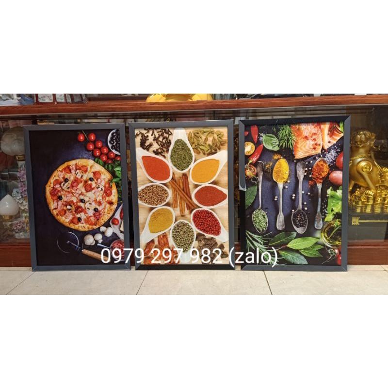 ✨Bộ 3 tranh canvas treo phòng bếp chủ đề đồ ăn kèm khung composite 2cm