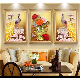 ✨Bộ 3 tranh treo tường trang trí phòng khách,phòng ăn, phòng ngủ CHIM CÔNG TÀI LỘC PVP_HD49