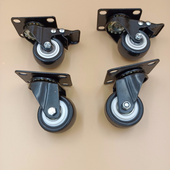 - Bộ sản phẩm gồm: 2 Bánh xe đẩy có khóa, 2 Bánh xe đẩy không có khóa Φ50mm rộng 32mm, tổng tải 150kg