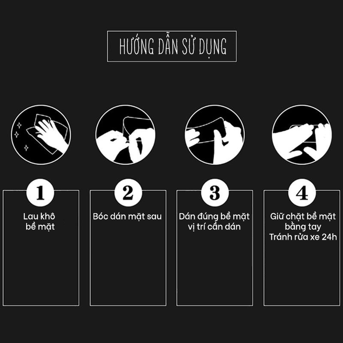 Miếng decal chống xước mép cửa và bậc cửa– Carbon loại dày dặn cao cấp – 4 miếng – Chống xước – Dễ dán – Giá tốt Bộ sản phẩm gồm 4 miếng (4PCS): • 2 miếng dài dán cửa trước 2 miếng ngắn dán cửa sau → Bảo vệ bậc cửa toàn diện, chống trầy xước do giày dép va quẹt mỗi khi lên – xuống xe. Chất liệu carbon bản dày cao cấp: • Dày – dẻo – bền, không rách, không bong mép như loại mỏng .• Bề mặt phủ vân carbon sang trọng, chống trượt nhẹ, dễ lau chùi • Tăng tính thẩm mỹ, giữ xe sạch sẽ và mới lâu Kích thước theo từng dòng xe: • 2 miếng 56 × 4.5 cm • 2 miếng 28 × 4.5 cm Dễ dán – Dễ dùng: • Dán trên bậc cửa hoặc mép dưới nếu phần trên đã có ốp nhựa/thép • Tự dán tại nhà, không cần dụng cụ, không cần tháo lắp Miếng dán carbon bản DÀY – bám dính chắc chắn – chống xước cực tốt – tăng thẩm mỹ cho xe