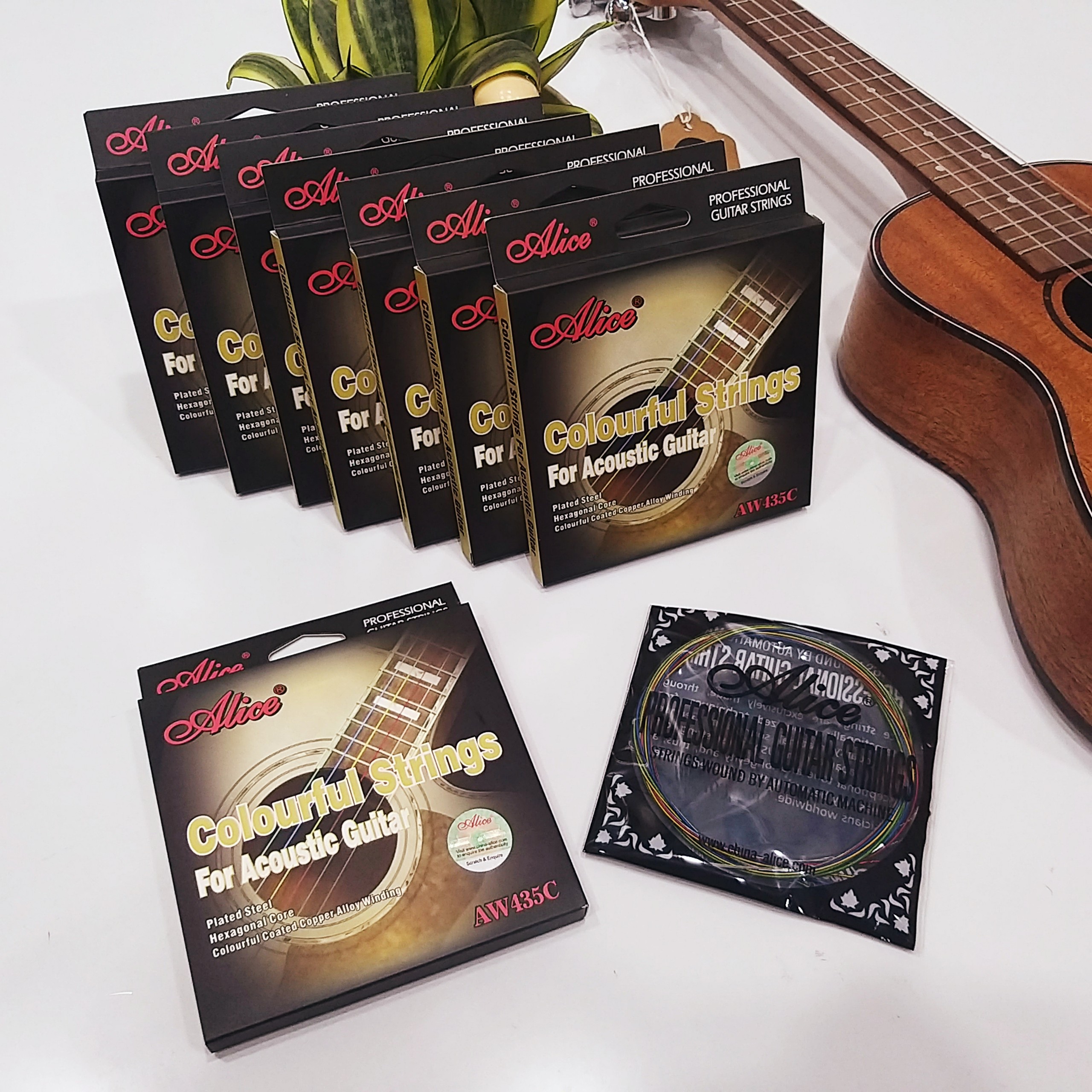 - Đặc biệt, Dây đàn Guitar Acoustic Alice AW435C có 6 dây màu khác nhau vừa giúp cho người mới tập chơi có thể phân biệt được các dây vừa tạo cá tính cho cây đàn guitar của bạn.