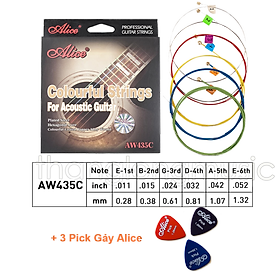 ✨Bộ 6 Dây Đàn Guitar Aooustic Nhiều Màu Alice AW435C Size 11 ( Kèm 3 Pick Alice AP-100Q)