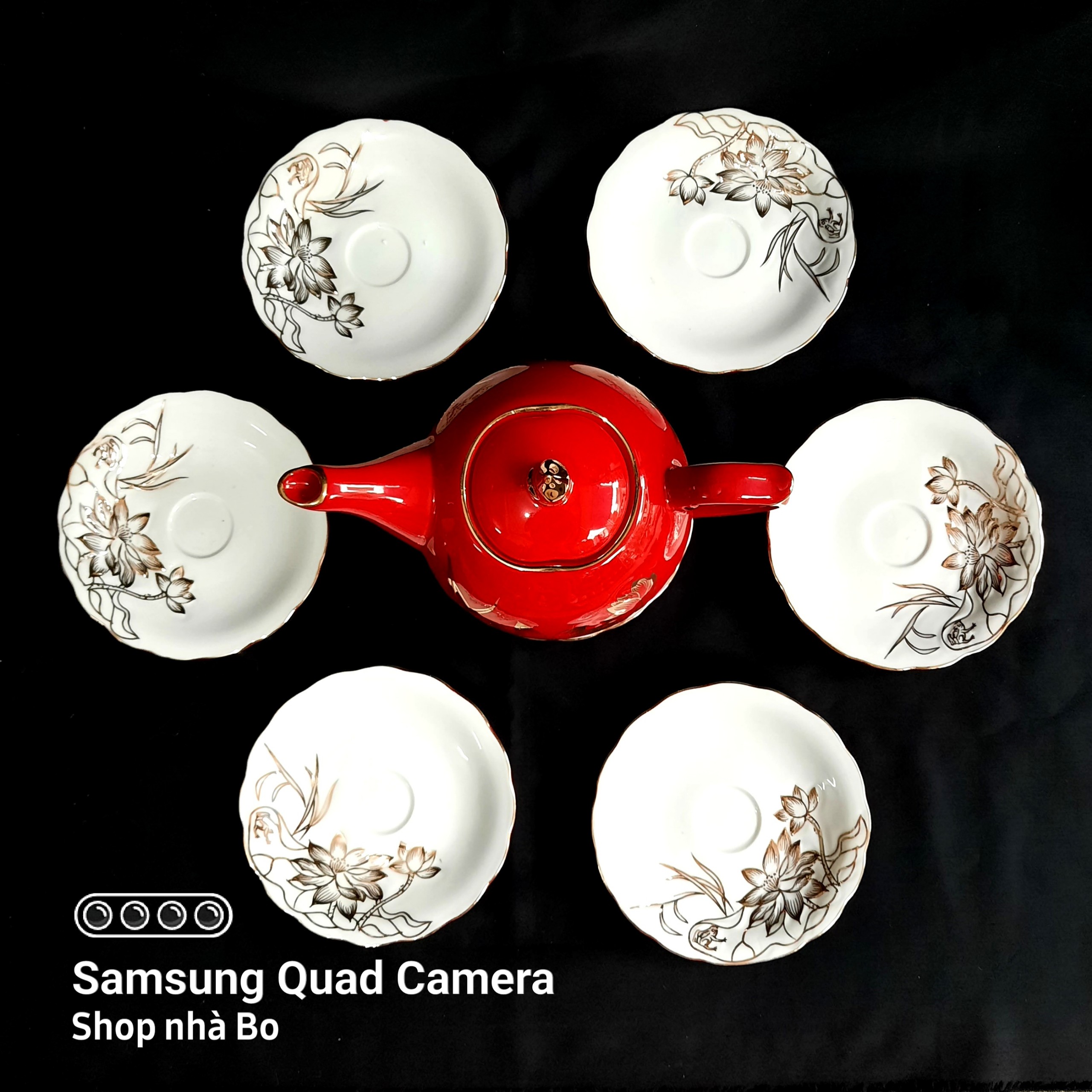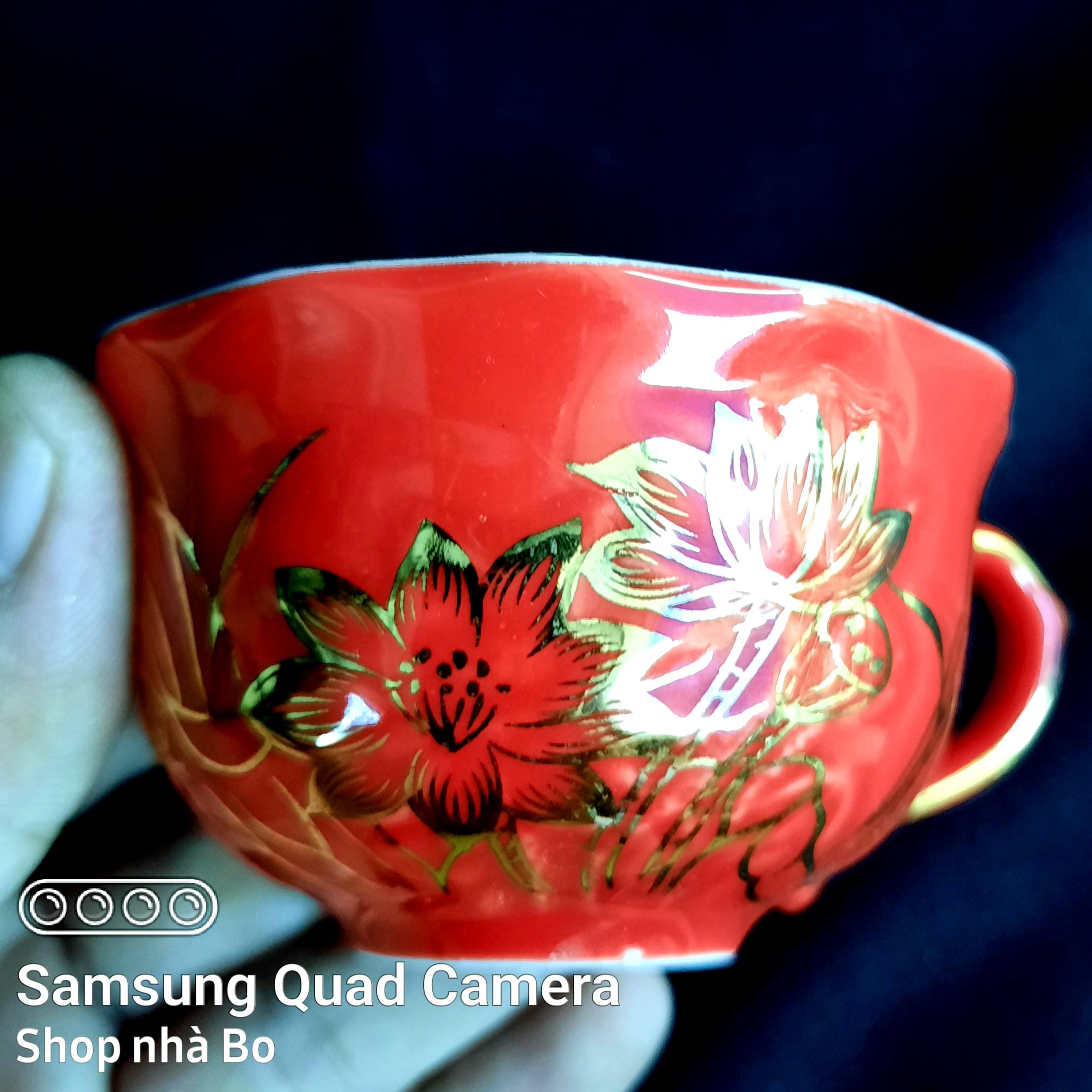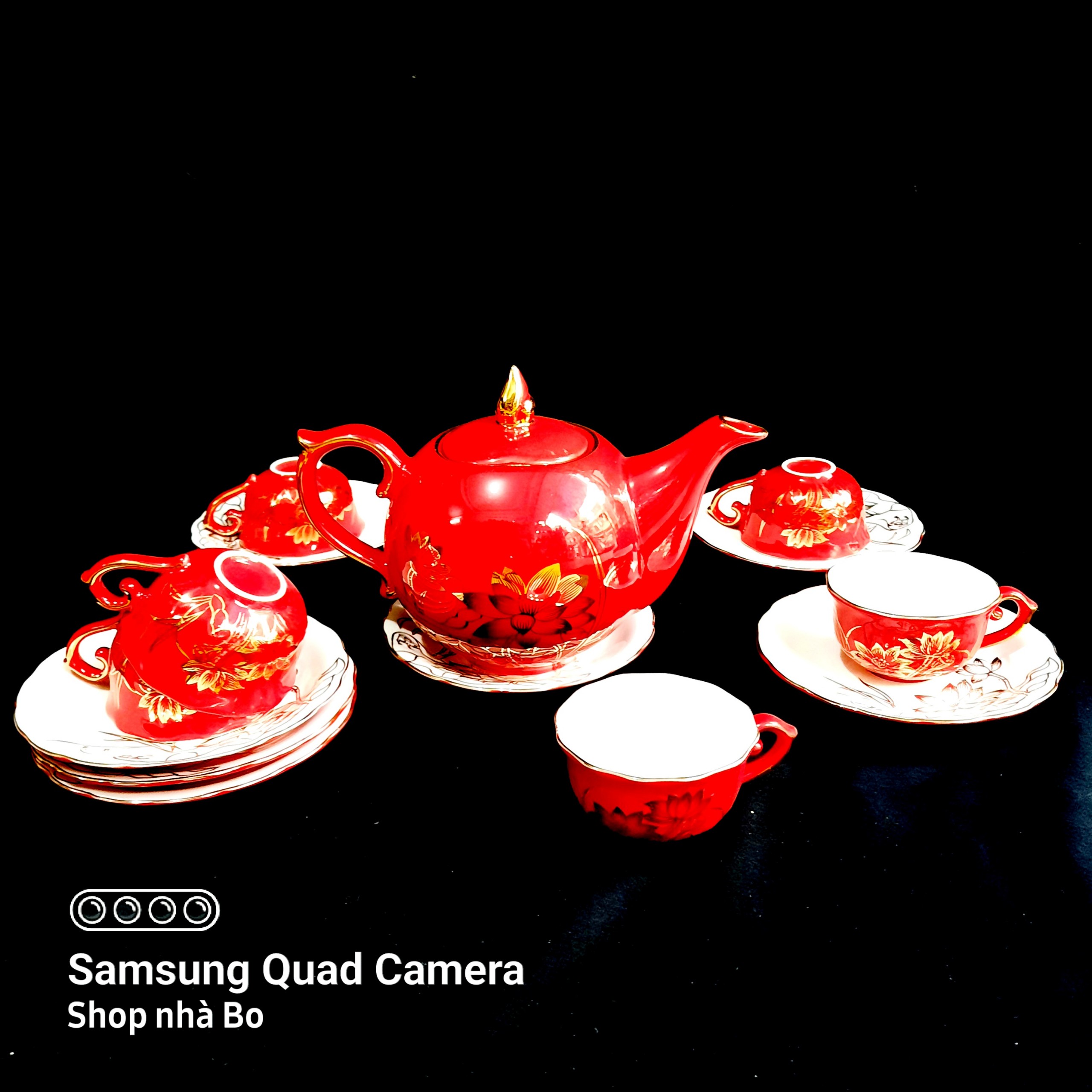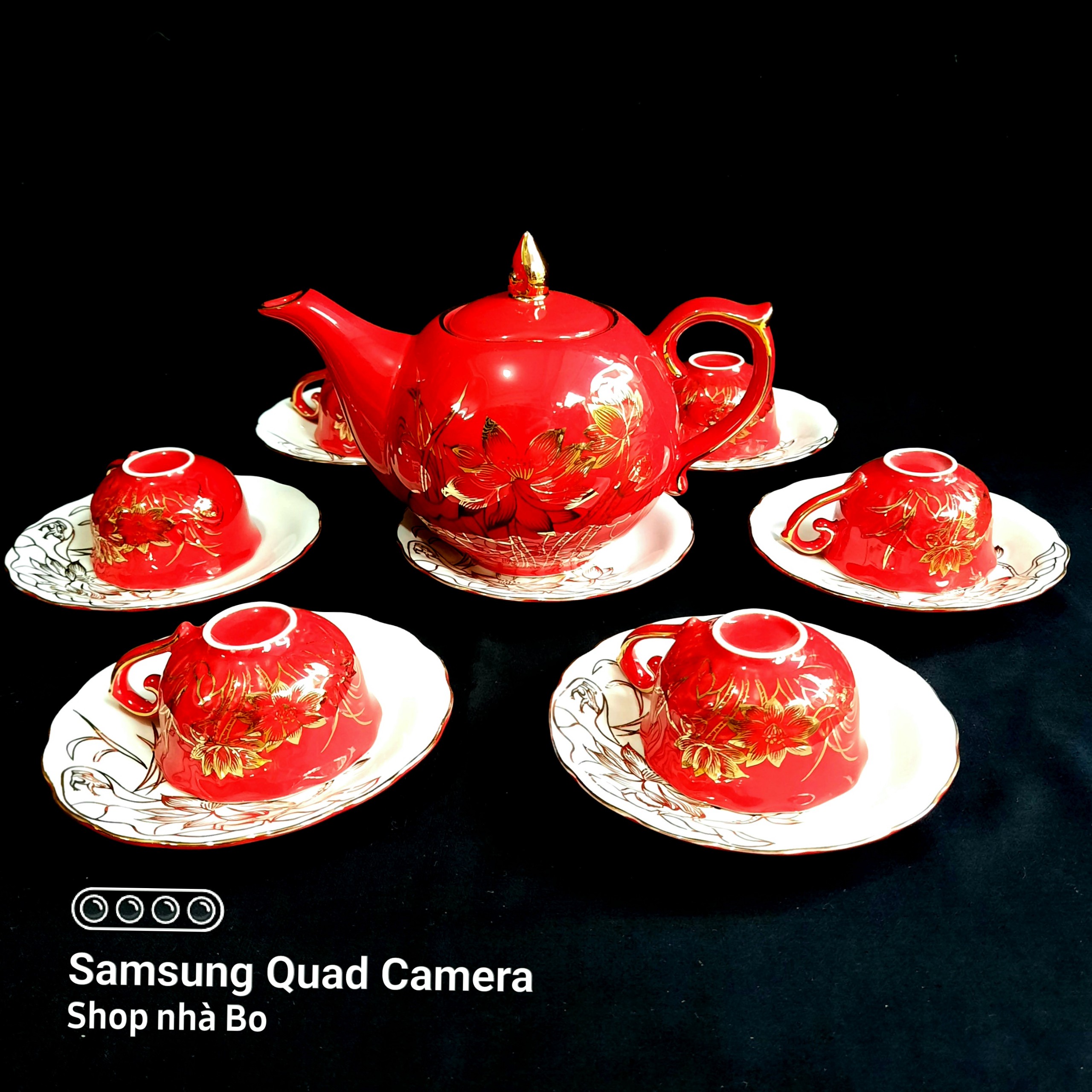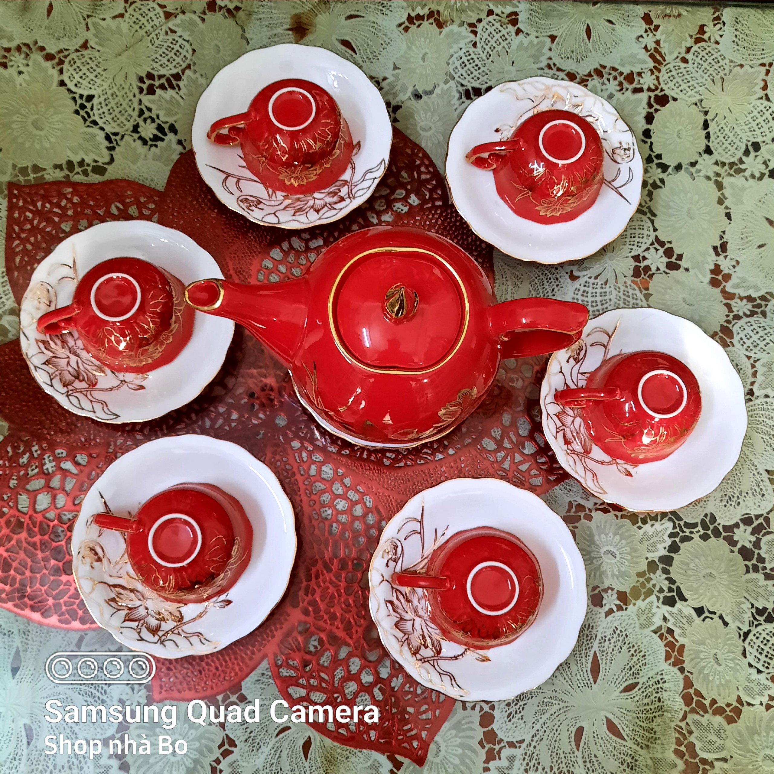 ✨Bộ ấm chén Bát Tràng cao cấp mẫu đơn đỏ vẽ sen vàng