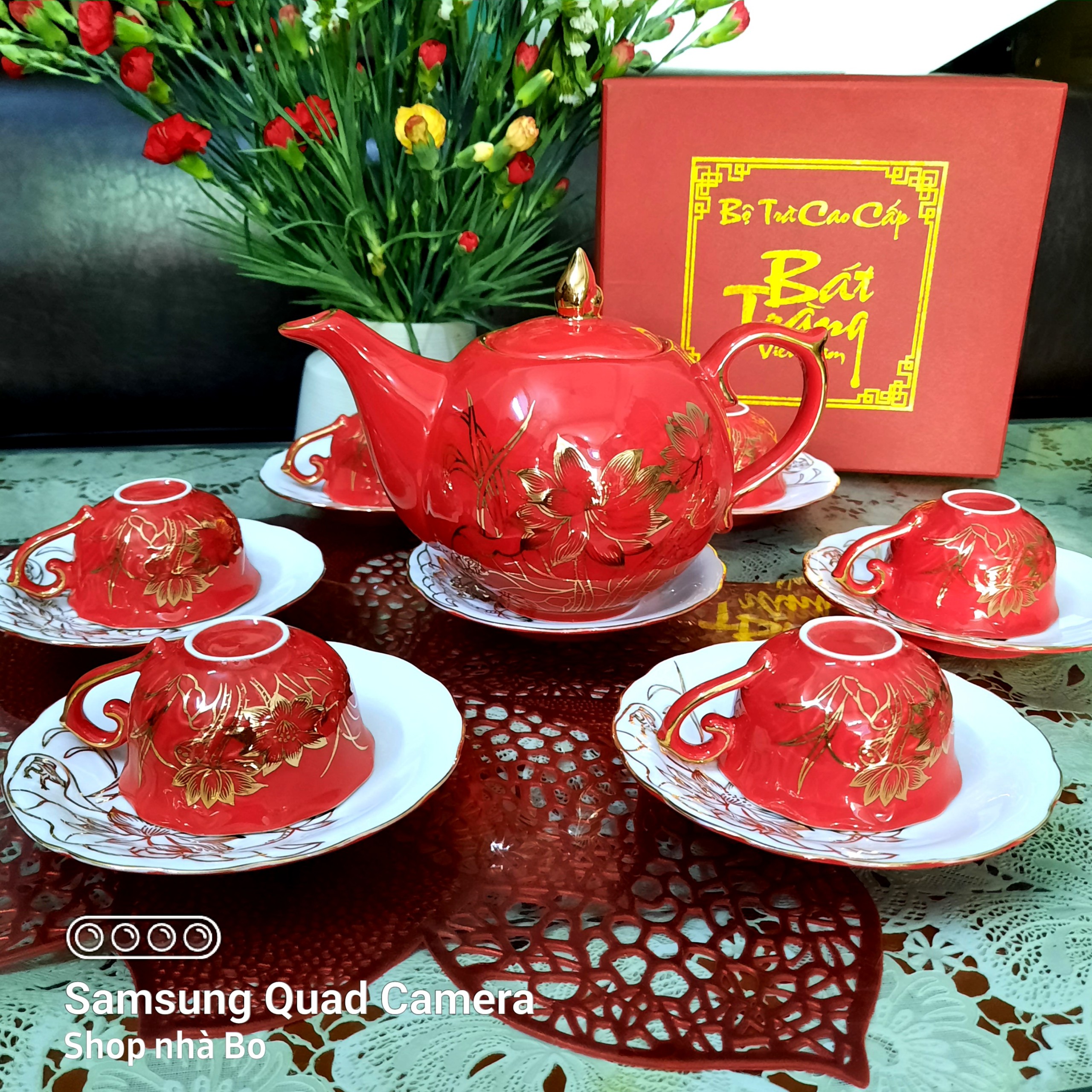 Bộ ấm chén Bát Tràng cao cấp mẫu đơn đỏ vẽ sen vàng Bộ ấm chén BátTràng là bộ ấm chén được làm từ làng nghề gốm sứ truyền thống Bát Tràng. Một trong những