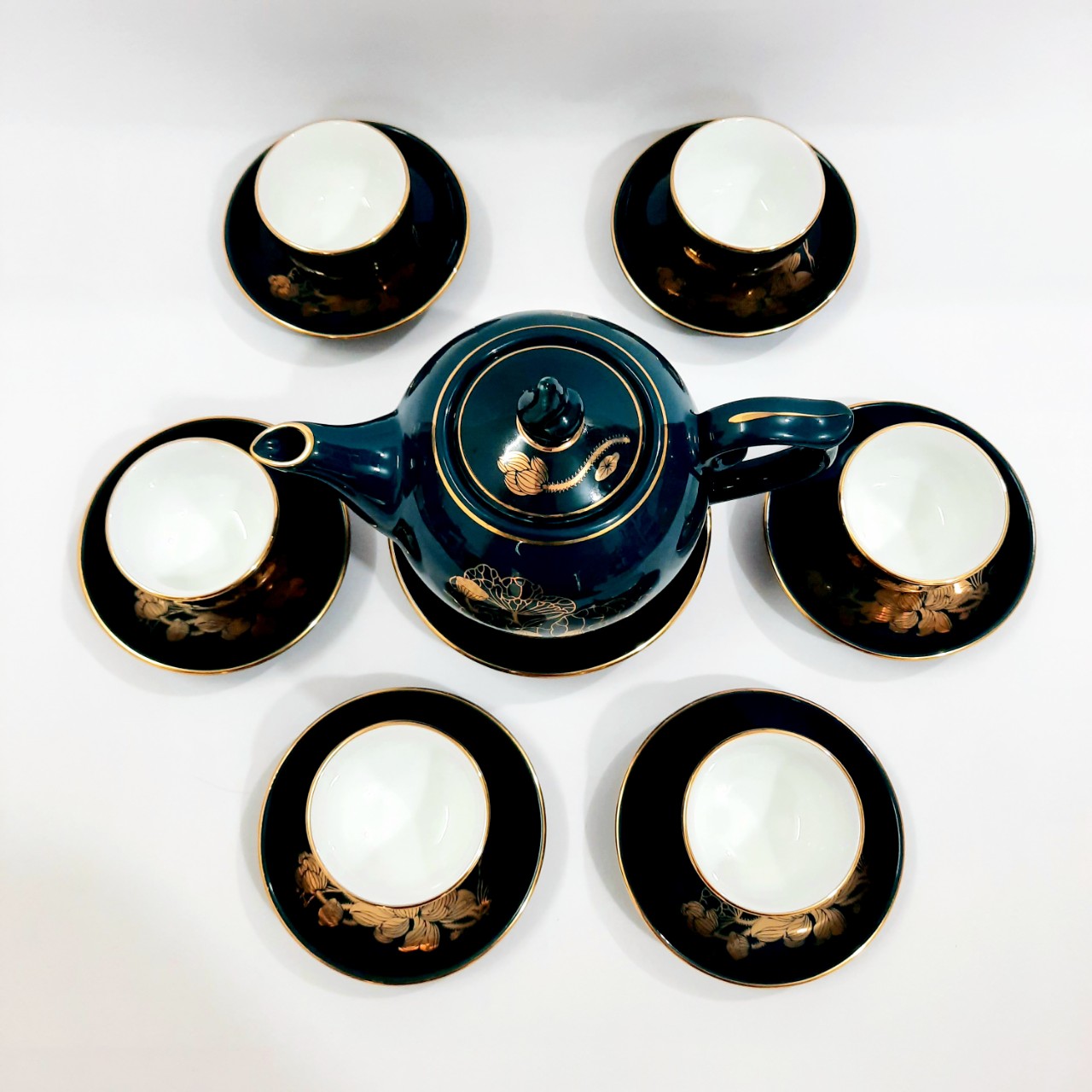 BỘ ẤM CHÉN VẼ VÀNG 24K VỚI HỌA TIẾT HOA SEN