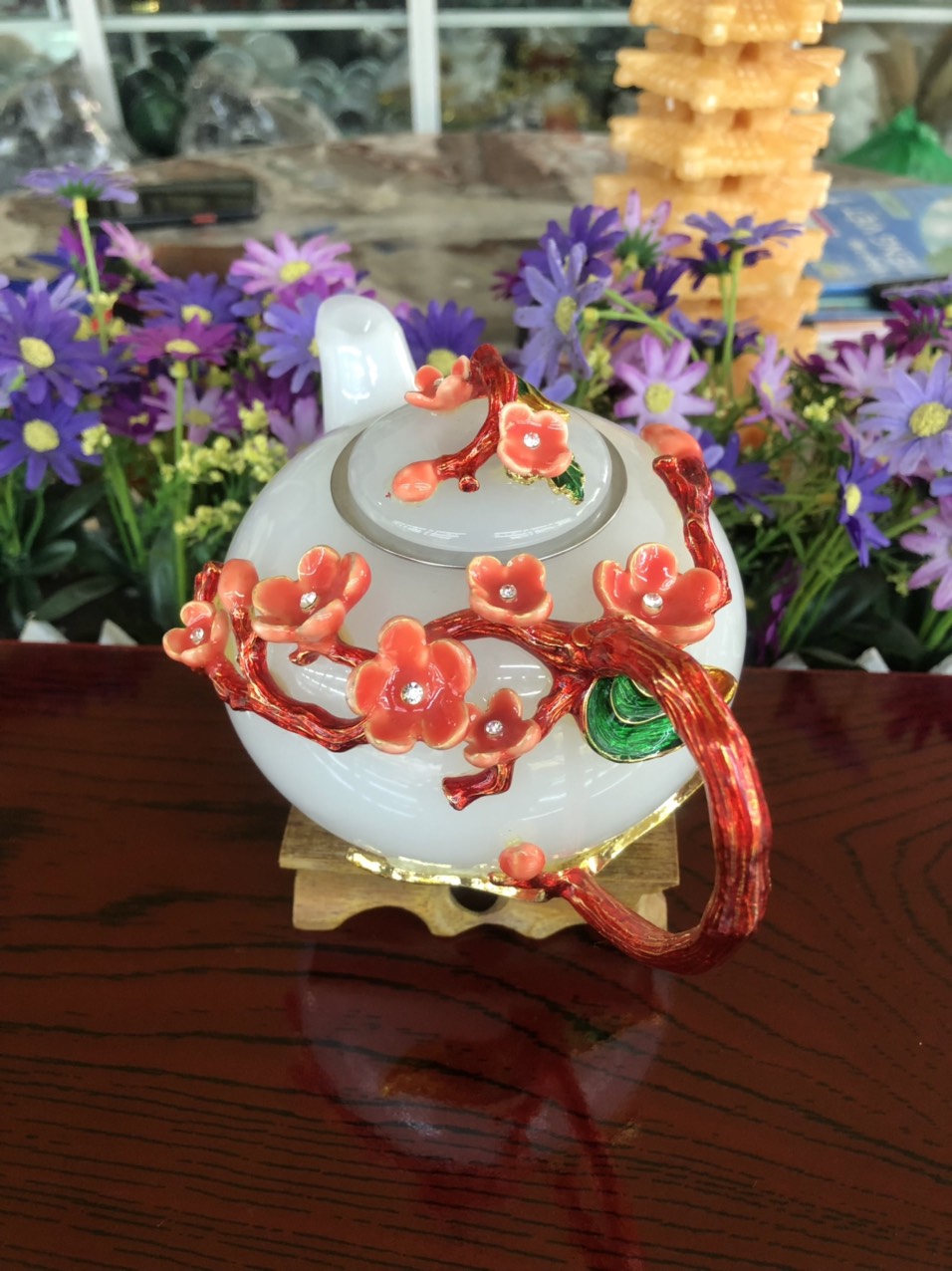 Bộ ấm trà bạch ngọc hoa mai