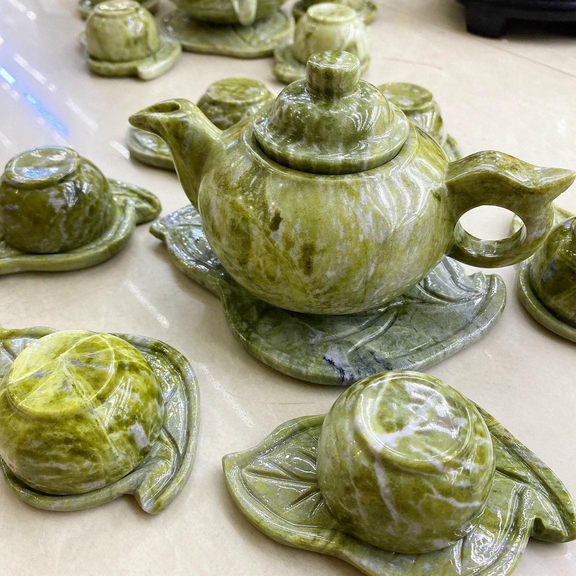 Bộ ấm trà bằng Ngọc Serpentine | 0918979468 - Đá Quý Trungroup
