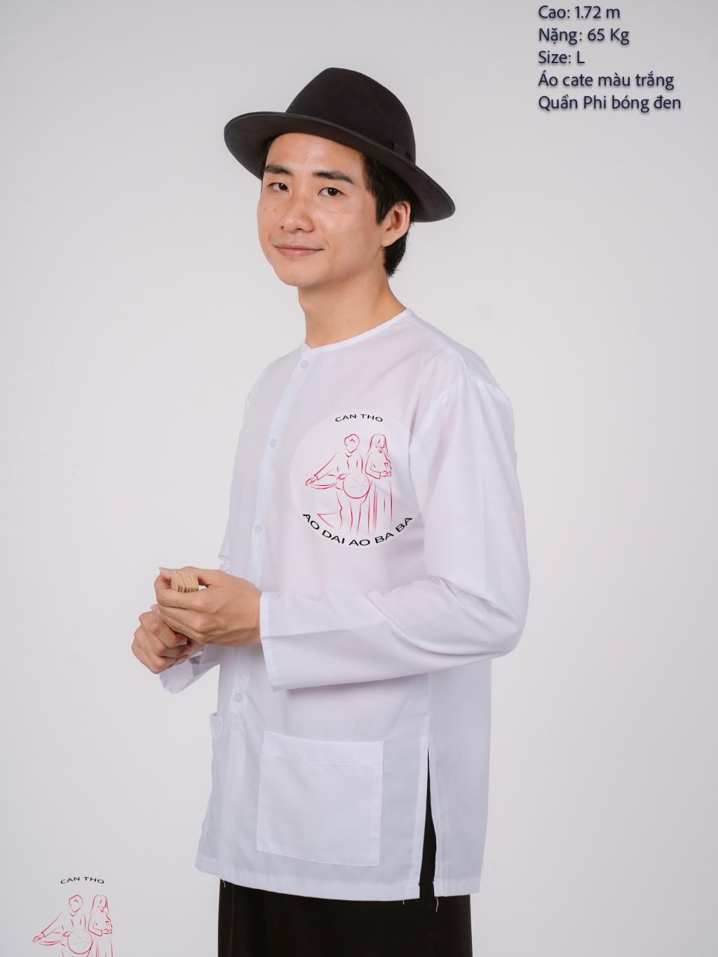 ✨Bộ áo bà ba nam phối áo cate trắng + Quần cate đen - Có bộ bà ba Bigsize