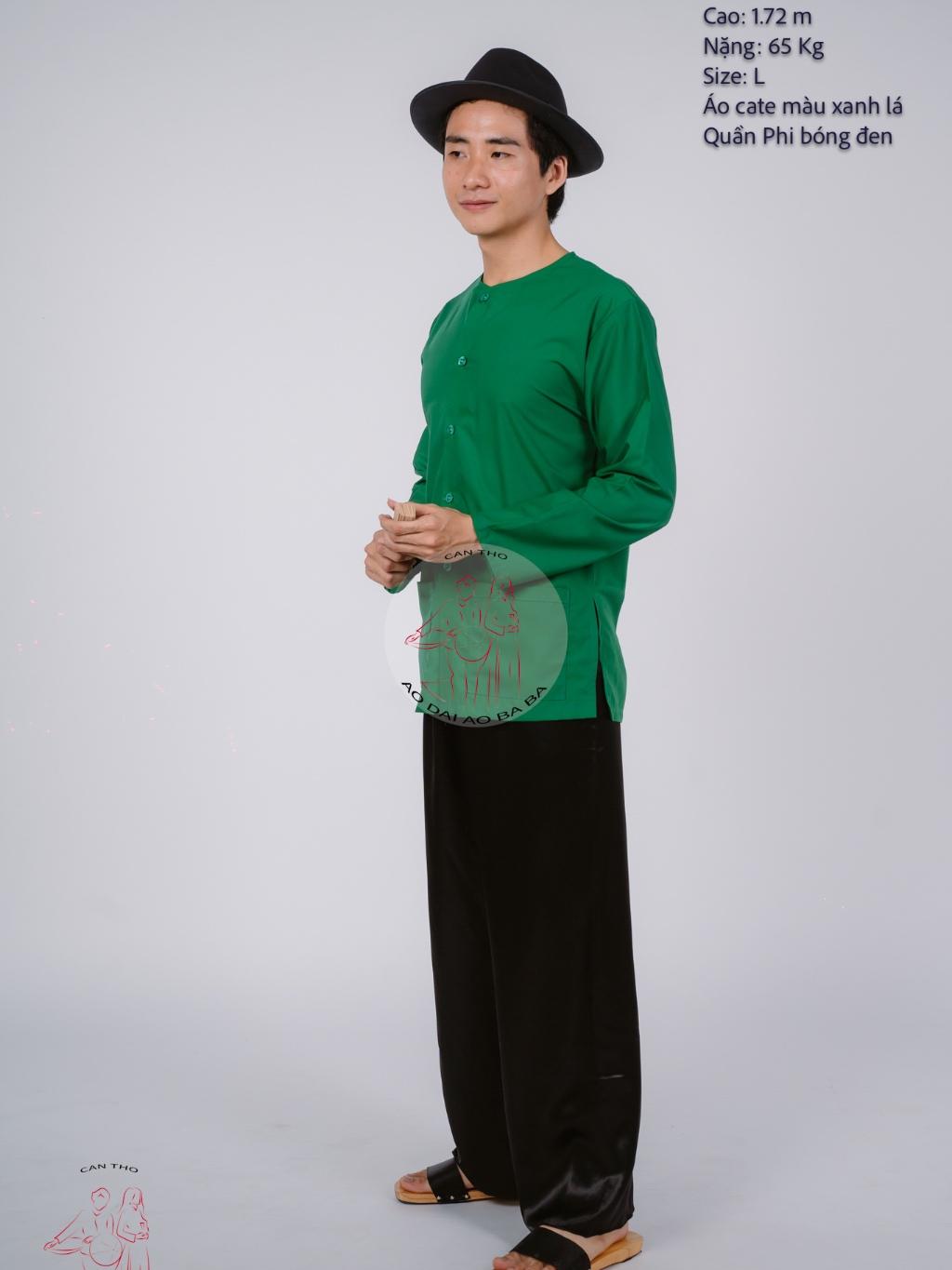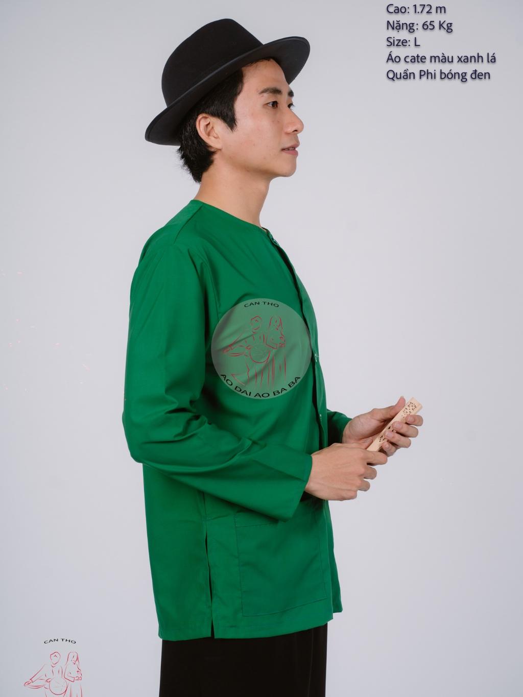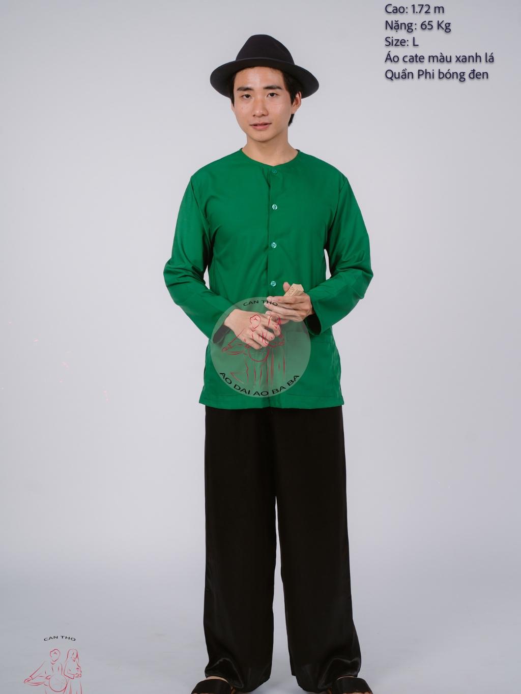 ✨Bộ áo bà ba nam phối áo cate xanh lá + Quần cate đen - Có bộ bà ba Bigsize