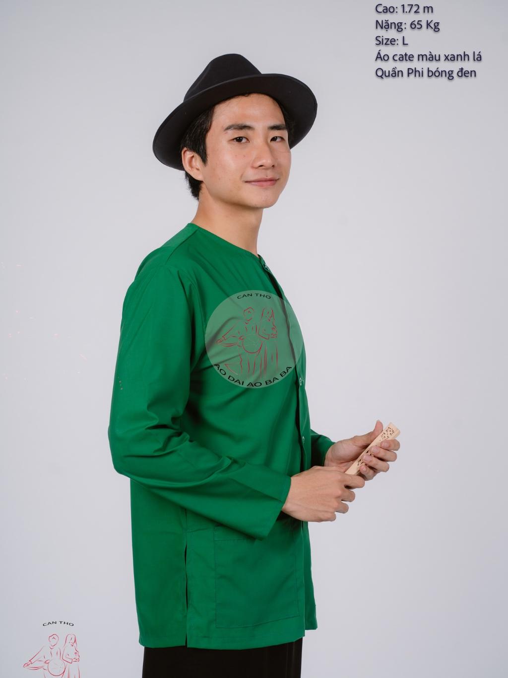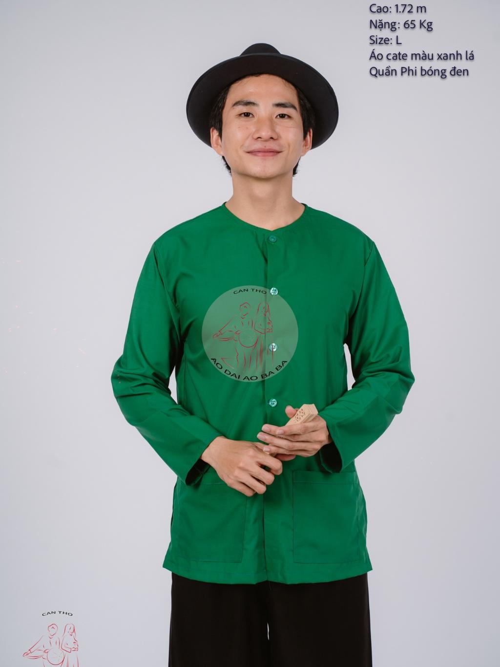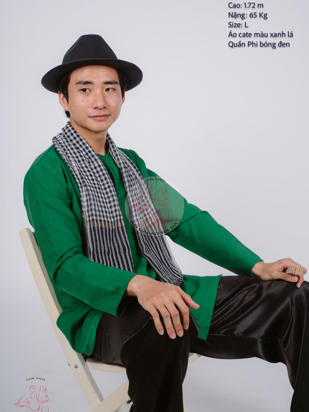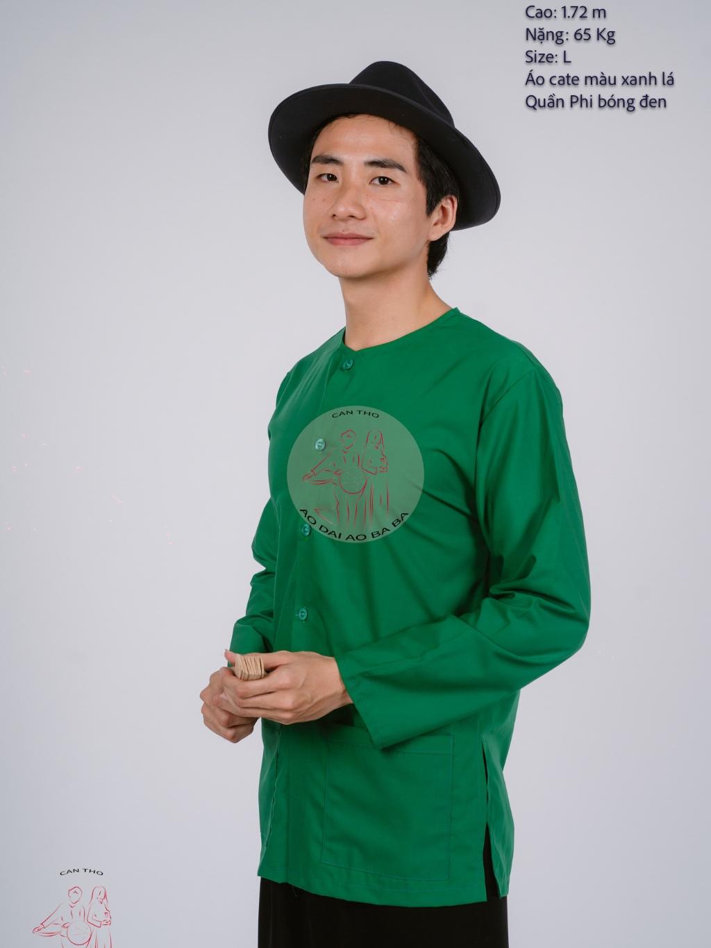✨Bộ áo bà ba nam phối áo cate xanh lá + Quần cate đen - Có bộ bà ba Bigsize