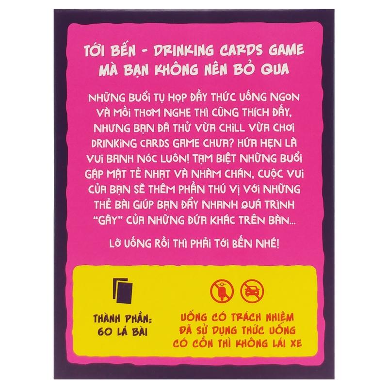 Giới thiệu Bộ Bài Drinking Game - Tới Bến Bộ Bài Drinking Game - Tới Bến Những buổi ăn nhậu đầy thức uống ngon và mồi thơm nghe thì cũng thích đấy, nhưng bạn đã thử vừa chill vừa chơi Drinking Cards game chưa? Hứa hẹn là vui banh nóc luôn! Tạm biệt những buổi gặp mặt tẻ nhạt và nhàm chán, cuộc vui của bạn sẽ thêm phần thú vị với hàng loạt thẻ bài siêu bựa sẽ giúp bạn đẩy nhanh quá trình “gãy” của những đứa khác trên bàn... Lỡ uống rồi thì phải Tới Bến nhé! Lưu ý: Uống có trách nhiệm - đã uống rượu bia thì không lái xe. Thành phần: 54 thẻ bài bình thường 6 thẻ bài bí mật 1 luật chơi