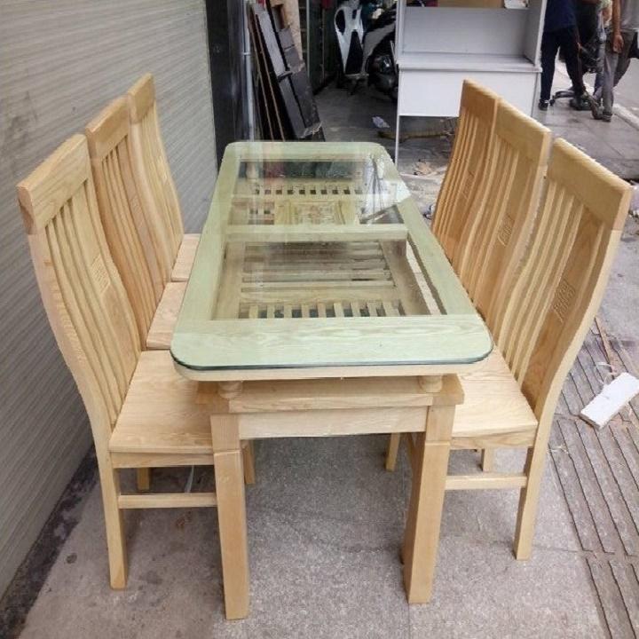 Bộ Bàn Ăn Gỗ Sồi Nga Mặt Kính 2 Tầng – Hàng Tồn Kho Tại Đồ Cũ Phong Hải