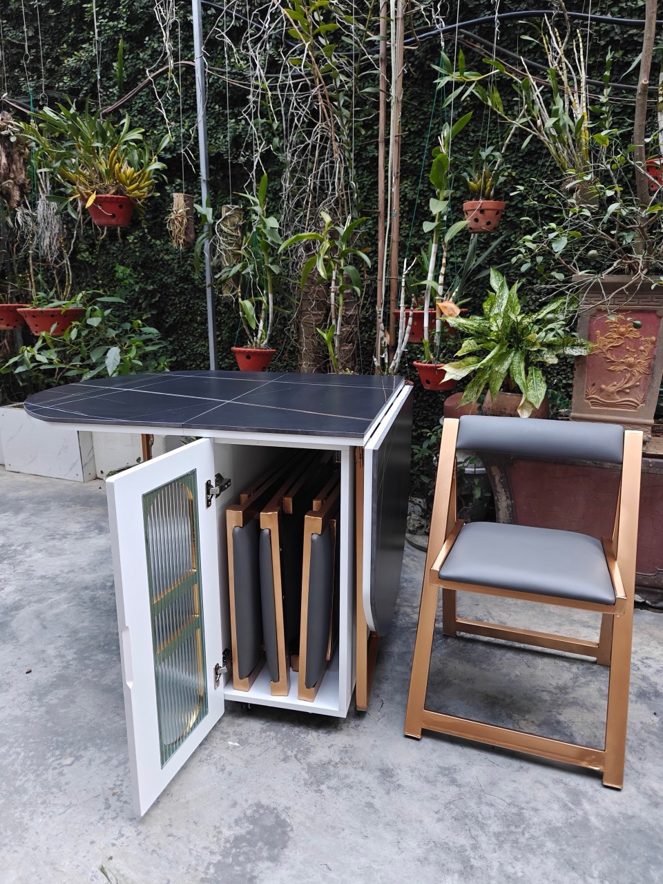 Cận cảnh bộ bàn ăn thông minh xếp gọn ghế vào khung bàn - Bàn Ăn Nhập Khẩu 077.596.1234