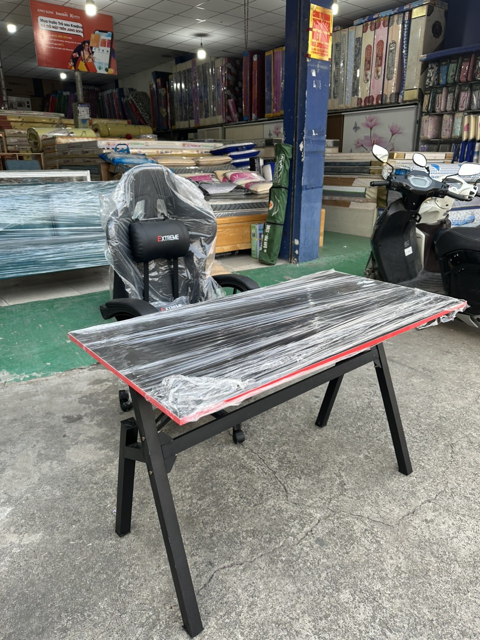 Quý khách hàng vui lòng chọn sản phẩm nhà bán TUNDO để nhận được sản phẩm đúng với chất lượng  Tay ghế lớn chắc chắn, bề mặt tay ghế êm thoải mái hơn, Độ hoàn hiện cao, Mặt ghế với các lỗ thoát khí, giúp cho người ngồi ghế thoáng mát ngay cả trong những ngày hè nắng nóng . Thiết kế mạnh mẽ, cứng cáp, cùng viền carbon nhấn nhá thu hút mọi ánh nhìn ! Thích hợp với hầu hết form người ngồi, thiết kế đẹp, form ghế to và chắc chắn ! Độ hoàn thiện cao tới từng đường chỉ, chất liệu da ghế thuộc phân khúc cao cấp trên thị trường Đệm mút dày dặn và có độ đàn hồi cao Màu sắc bàn: Chân bàn đen, mặt bàn full đen & mặt bàn đen viền đỏ Kích thước:  - 60 x 120 x Cao 75 Bàn gaming với thiết kế độc lạ, chắc chắn và hiện đại  Mặt bàn gỗ công nghiệp MDF phủ Melamine 2 mặt chống trầy xước, chống thấm, đã qua xử lý cong vênh Khung chân sắt hộp sơn tĩnh điện bền đẹp, chống gỉ khả năng chịu lực tốt giúp bạn dễ dàng tháo rời từng bộ phận tiện lợi cho việc di chuyển Mặt bàn rộng có thể thoải mái setup máy tính và các đồ vật trang trí khác.