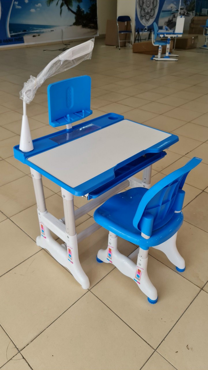 Kích thước: 70 x 50cm Màu sắc: Xanh và Hồng tùy chọn Dễ dàng lắp đặt Điều chỉnh độ cao phù hợp với chiều cao của trẻ Mặt bàn điều chỉnh nghiêng tời 45 độ dễ dàng đọc viết và vẽ Tựa ghế dạng cánh giúp cân bằng cột sống và thoải mái khi ngồi Đặc biệt : Tặng đèn LED chống cận Chất liệu: Mặt bàn gỗ công nghiệp, khung thép mạ tĩnh điện kết hợp với nhựa cứng ABS