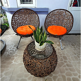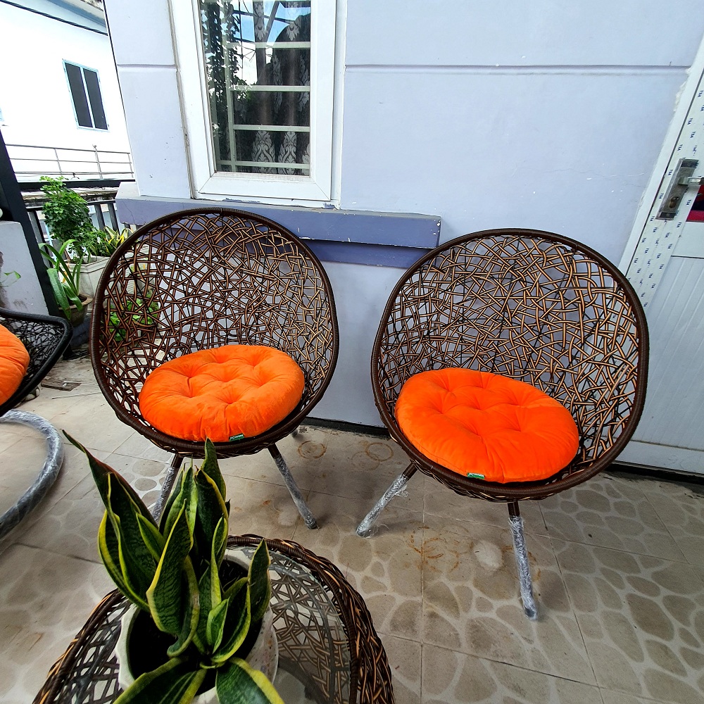Bộ sản phẩm xích đu gồm : 01 bàn kính + 02 nệm ghế như hình màu sắc như hình Tính thẩm mỹ được khẳng định rõ nét trong không gian ngôi nhà của bạn. Bạn được tận dụng cảm giác giãn thật sự mỗi khi cùng nhau nghỉ ngơi sau những giờ làm việc căng thẳng Ghế ngoài trời cao cấp là giải pháp lý tưởng về cách thức trang trí sân vườn, cảnh quan sống hiện đại. Hãy để Navicom đồng hành cùng bạn trong quá trình kiến tạo không gian sống sang trọng, tiện nghi và thoải mái nhất. Chất liệu Khung Sắt + mây PE+ Gối vải Gối vải màu sắc ngẫu nhiên Kích thước ghế: 700 x 700 x 800 mm Kích thước bàn: 550 x 550 x 420mm Chất liệu: Sắt đặc sơn tĩnh điện, dây vinyl nguyên sinh Tạo cảm giác êm ái, sãng khoái cho người sử dụng
