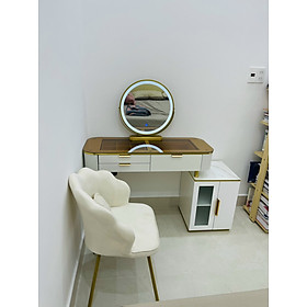 Mua tại TiktokQuý khách hàng vui lòng chọn sản phẩm nhà bán TUNDO để nhận được sản phẩm đúng với chất lượng Bàn trang điểm là thứ không thể thiếu đối với các bạn gái. Ngoài việc giúp cho công đoạn làm đẹp dễ dàng hơn, bàn phấn trang điểm còn có tác dụng trang trí phòng và thể hiện gu thẩm mỹ của chủ nhân. Thiết kế hiện đại đa dạng mẫu mã dễ dàng lựa chọn để phù hợp với phong cách thiết kế phòng ngủ của bạn. Thông tin sản phẩm: Combo bộ bàn ghế trang điểm gồm 1 bàn, 1 ghế và 1 gương led. Khung sắt sơn tĩnh điện Hộp bàn gỗ màu trắng, có tay nắm kéo, kèm hộp tab cùng màu. Mặt bàn bằng kính cường lực sang trọng. Ghế nệm bọc da nhiều màu Gương led