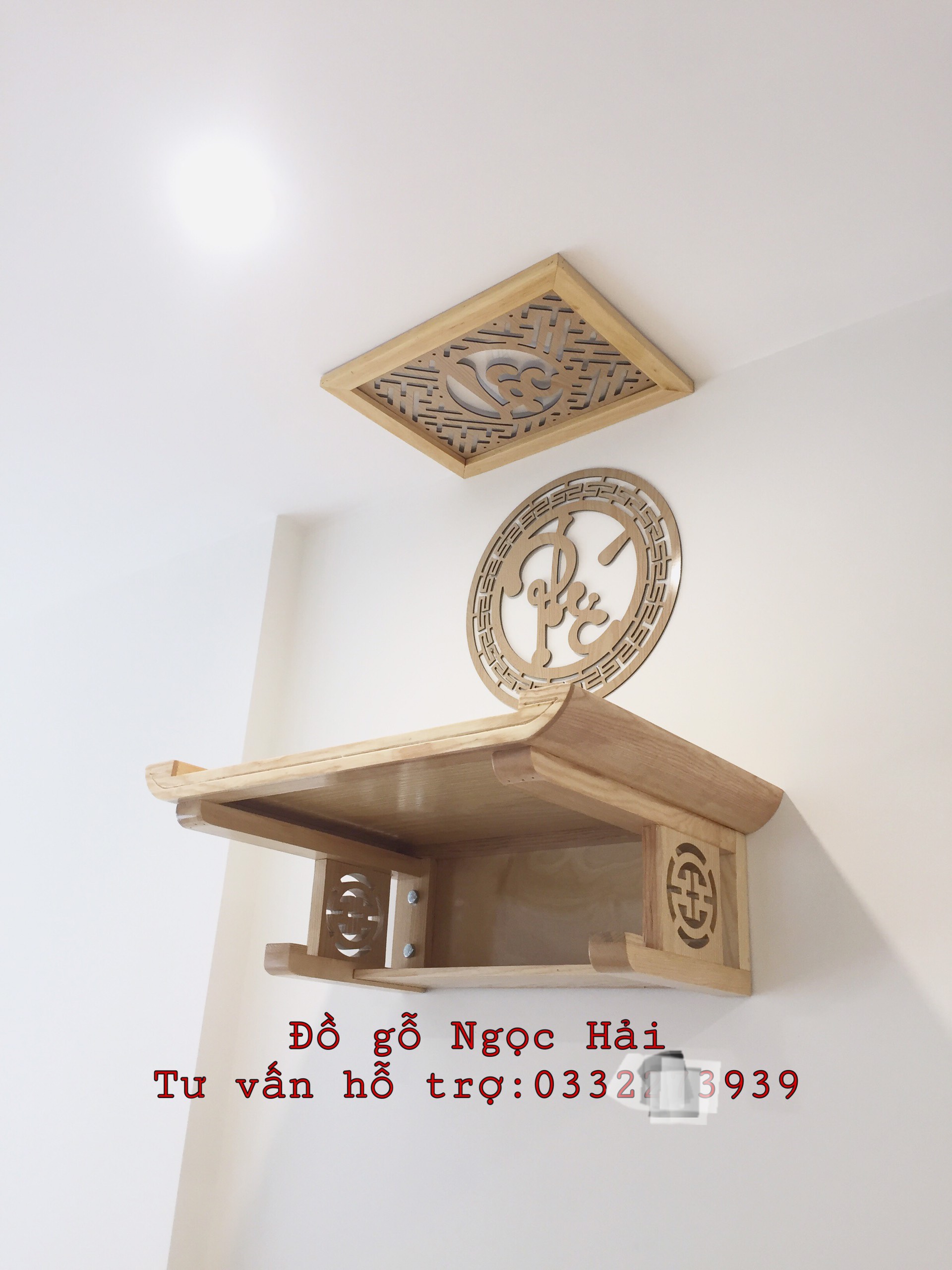 ✨Bộ bàn thờ chung cư bằng gỗ sồi + ám khói +chữ phúc hãy chữ bất kỳ bằng gỗ sồi nga