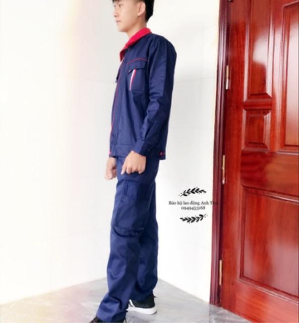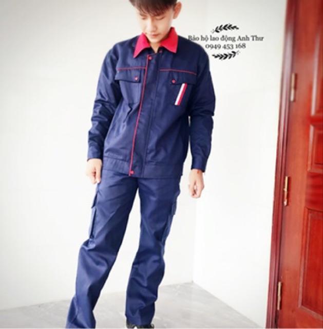 Áo được may phối màu ở phần cổ áo, vai áo và đường phối viền ở ngực áo Áo có hai túi to trước ngực có nắp đậy, có khóa kéo tiện dụng. Áo cài cúc có nẹp che cúc, có bo tay và bo đai hông, túi gài bút bên tay trái Quần được may theo dáng đứng, đai quần kết hợp thun co giãn 2 bên hông và thắt lưng với hai túi chéo to thoải mái, 1 túi hậu sâu và hai túi hộp ở đùi đáp ứng nhu cầu để đồ và sử dụng của công nhân cũng như các kỹ sư khi tham gia làm việc Cách chọn size: Size S: thích hợp cho nam từ Size M: thích hợp cho nam từ 1.63m đến 1.73m, nặng từ 54-65kg Size L: thích hợp cho nam từ 1.70m đến 1.78m, nặng từ 63-70kg Size XL: thích hợp cho nam từ 1.75m đến 1.85m, nặng từ 70-80kg