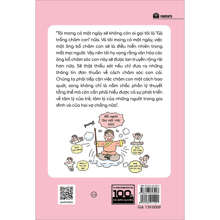 Chia sẻ gánh nặng với vợ: Tác giả khuyến khích các ông bố cùng vợ chia sẻ công việc chăm sóc con cái, giúp gia đình có thêm thời gian bên nhau.