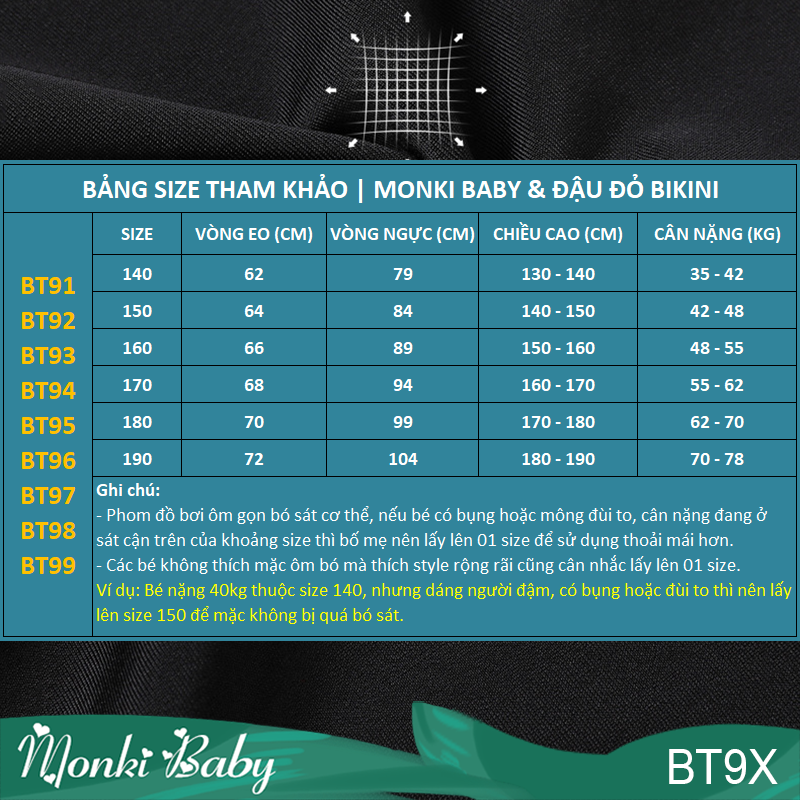 • Chất thun bơi lạnh dày đẹp: Co giãn tốt, ôm sát cơ thể, bảo vệ bé khỏi tác hại của tia UV.