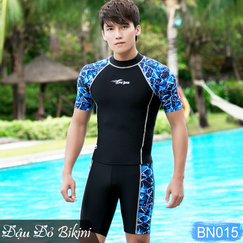 - Mẫu quần áo bơi cao cấp mới nhất với thiết kế thể thao khoẻ khoắn cho các bạn nam. - Chất vải thun bơi co giãn, ôm sát, dễ dàng vận động trong nước,