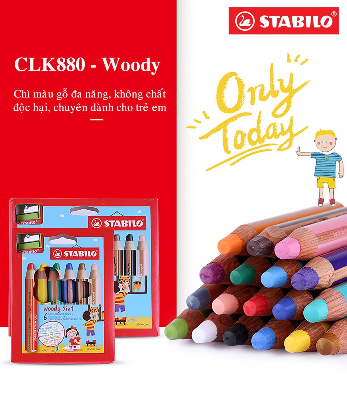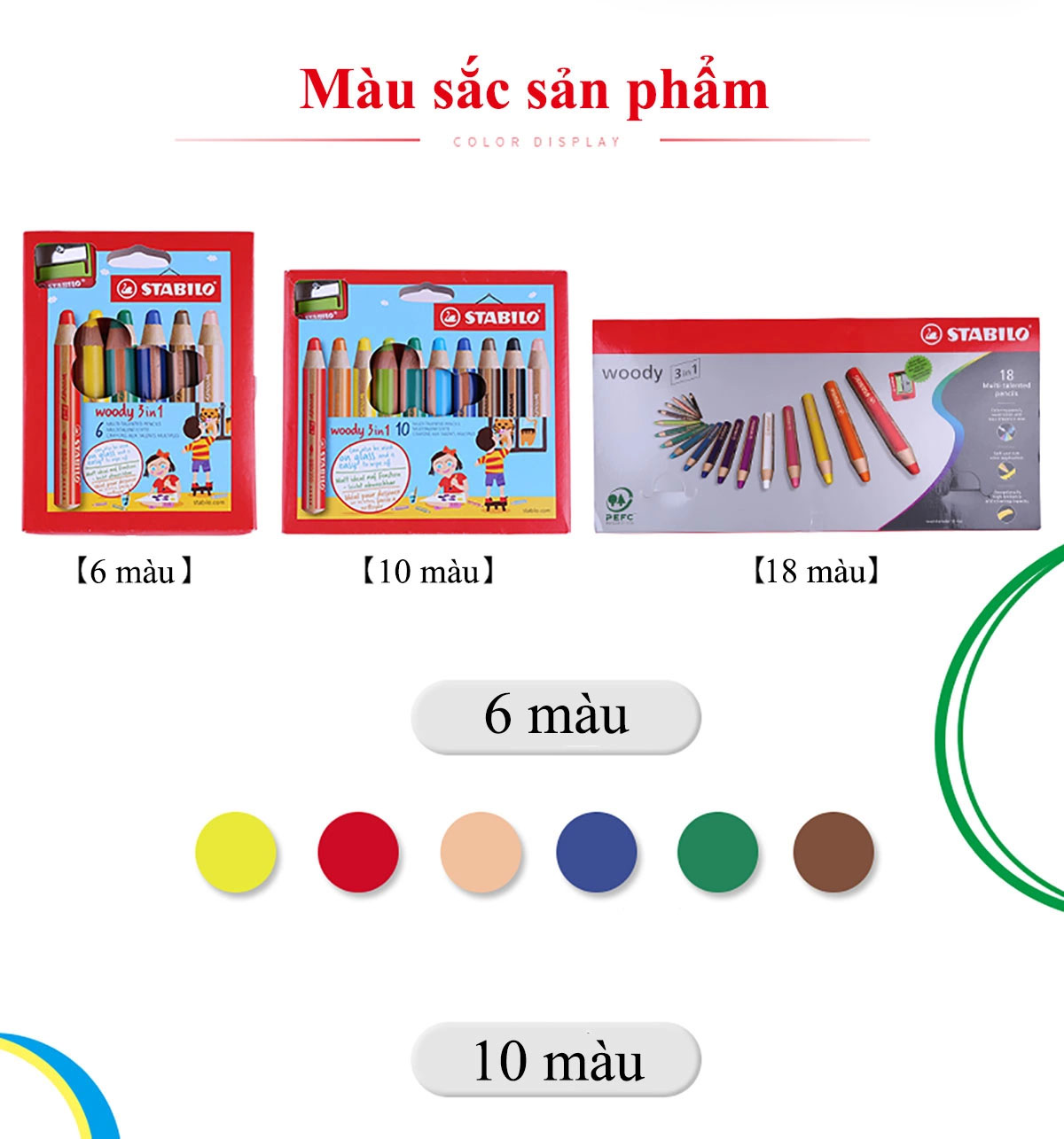 ✨Bộ Bút Chì Màu Stabilo Woody 3-in-1 CLK880-6C