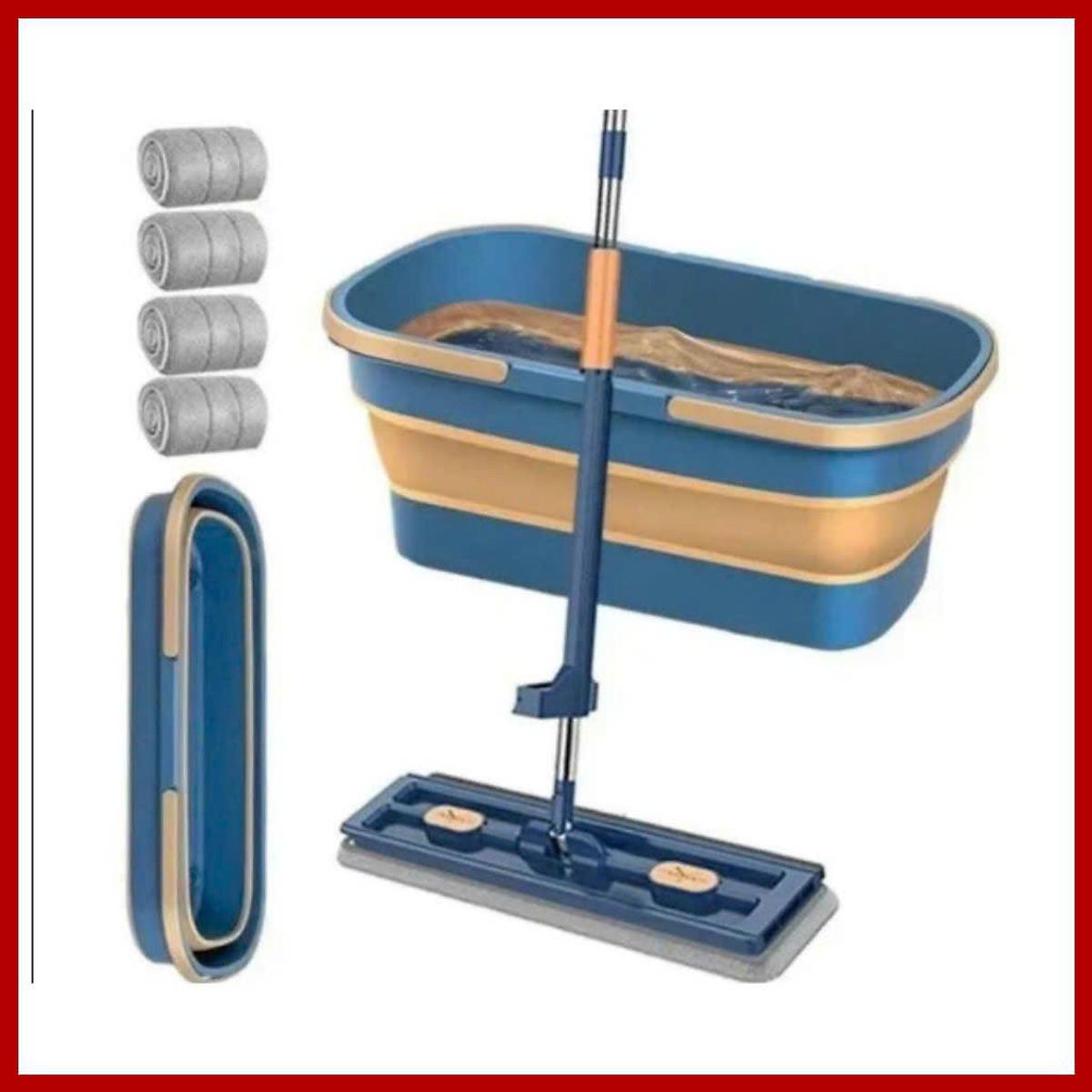 Bộ Cây Lau Tự Vắt Nhà Kèm Xô Gấp Gọn Silicon Thông Minh, Tặng Kèm 4 Bông Lau Mẫu Mới 2025